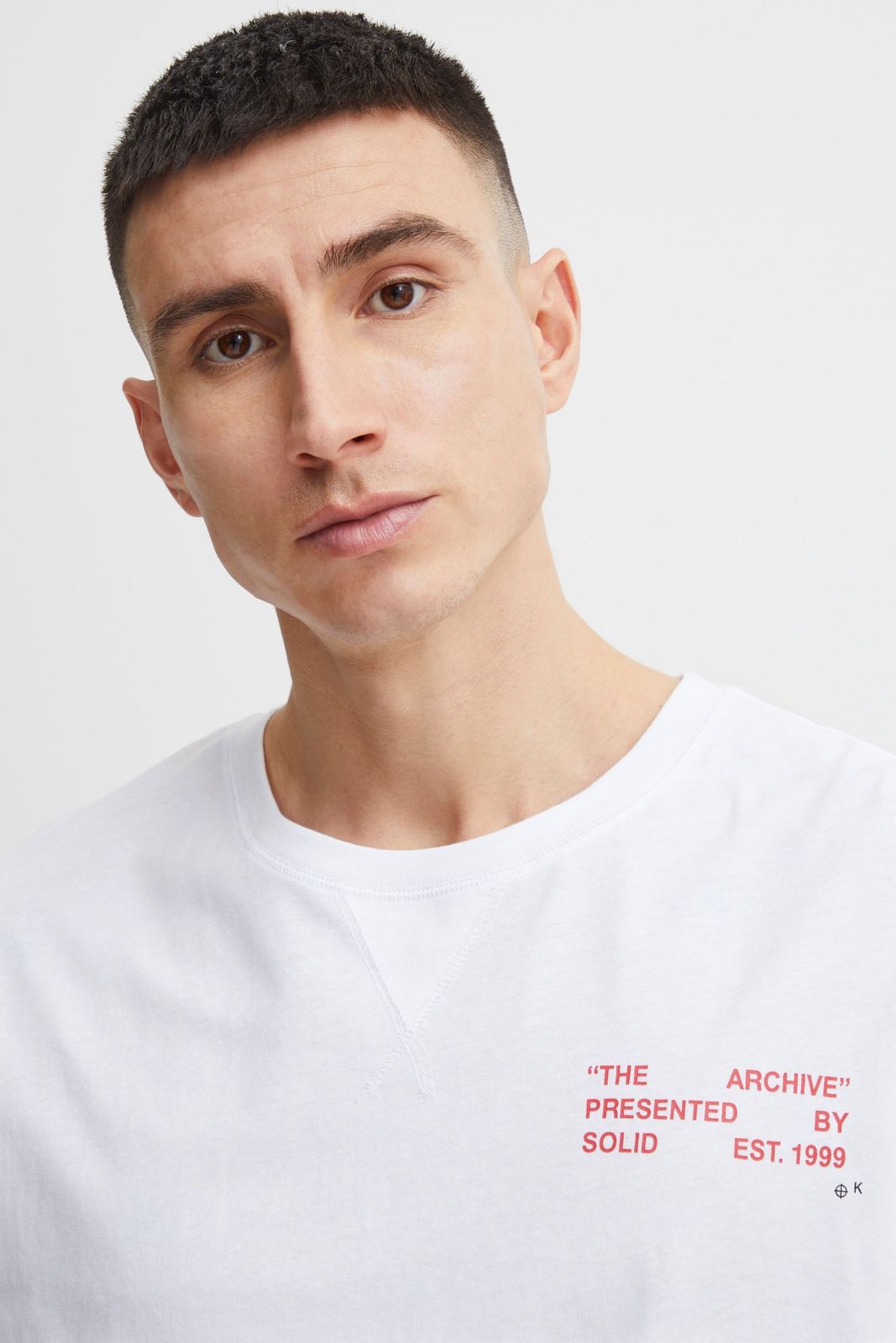 classique SOLID SDElam homme T-shirt avec col rond T-shirt homme 21107521-110601 Blanc
