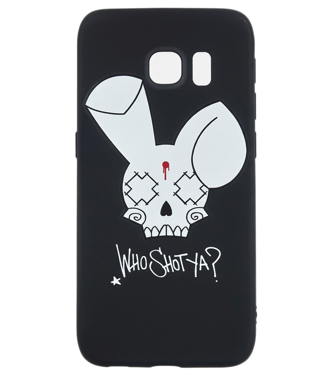 Coque noire pour Samsung S6 Edge avec logo lapin Who Shot Ya ?