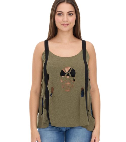 Débardeur femme ROCKUPY Ariana avec décolleté tête de mort, chemise en coton, haut d'été avec découpes 366326 Kaki