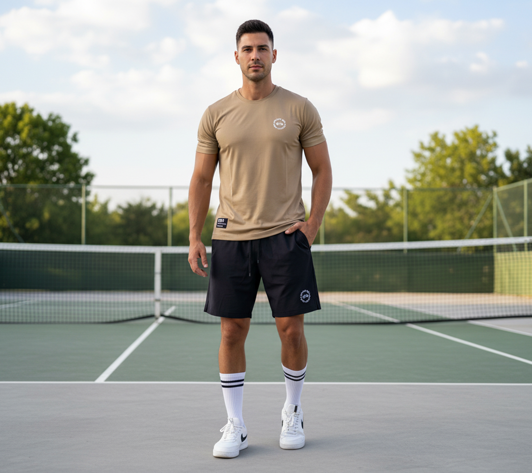 Ensemble 2 pièces moderne pour l'entraînement et le quotidien : t-shirt respirant et short léger – minimaliste, fonctionnel et stylé.