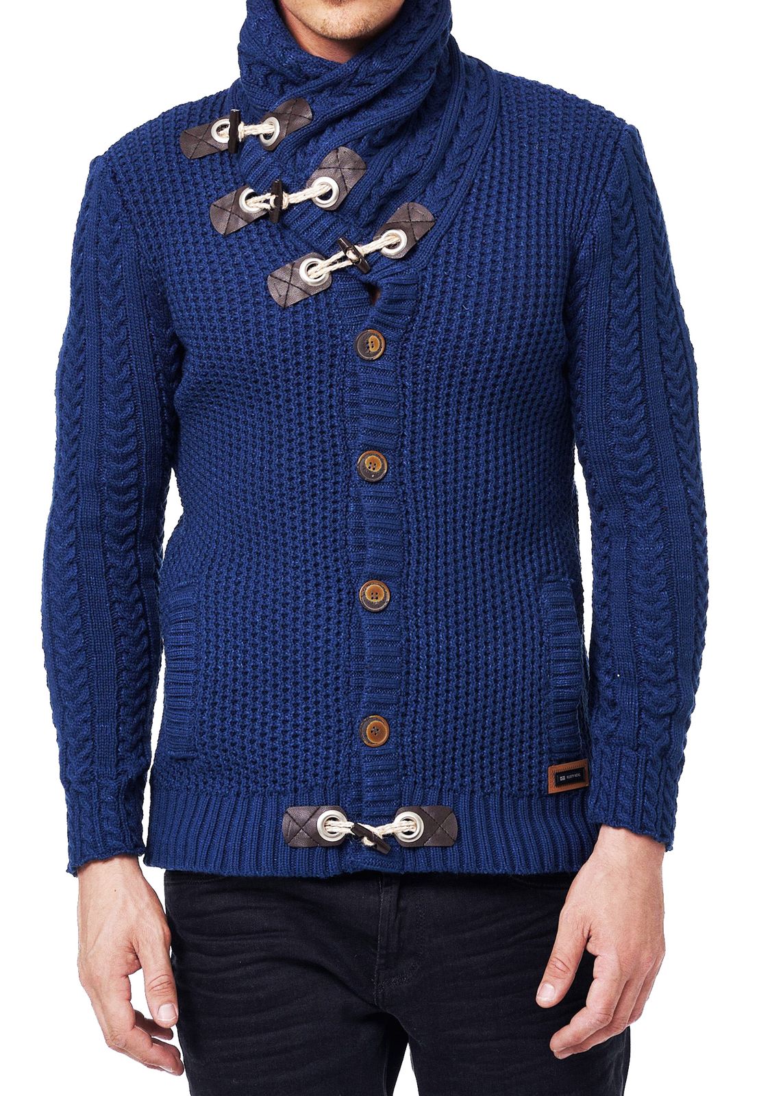Gilet cardigan homme en grosse maille, col montant et fermeture à brandebourgs, référence 13418, couleur pétrole
