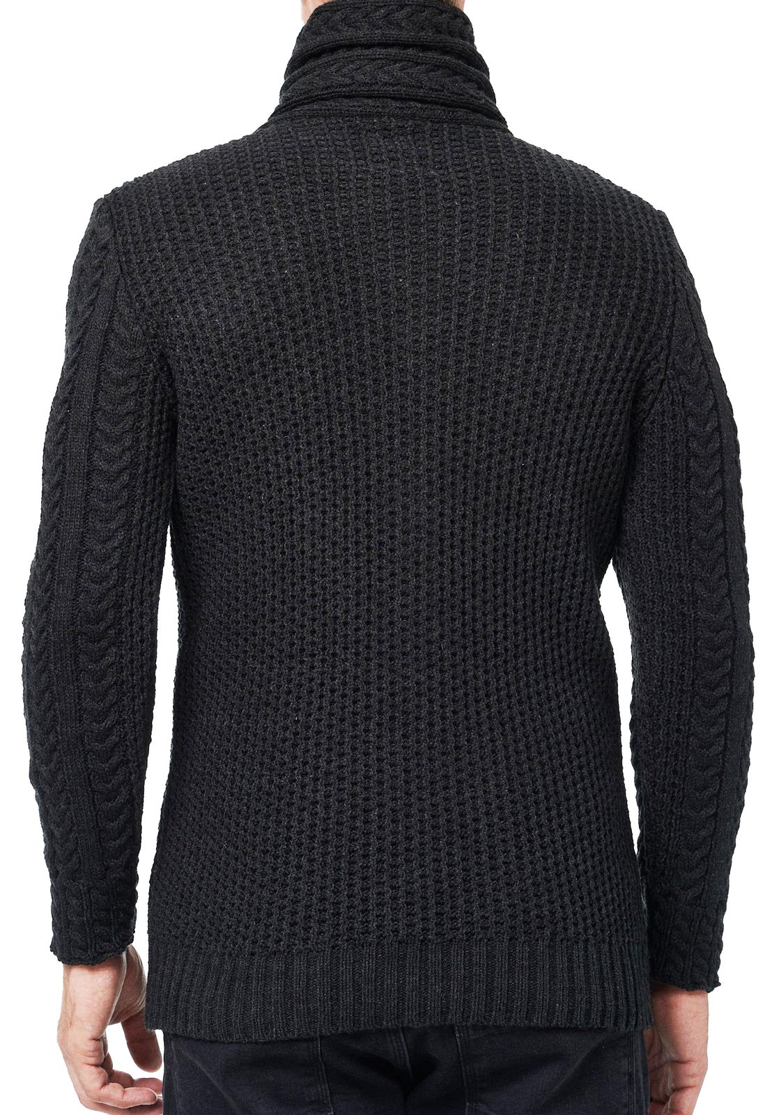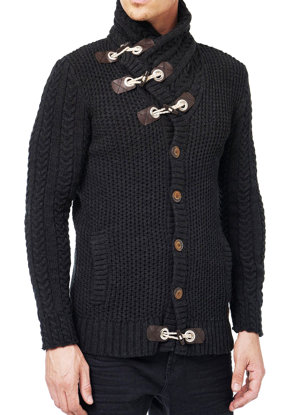 Gilet cardigan pour homme en grosse maille, col montant et fermeture à brandebourgs, couleur anthracite (réf. 13418).