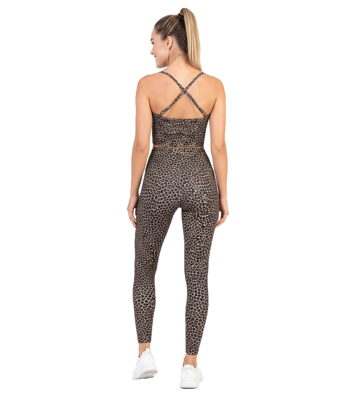 Leggings de sport légers et doux SLEEX pour femme, coupe décontractée, coutures plates, style léopard, réf. 44051-008, beige/marron/noir