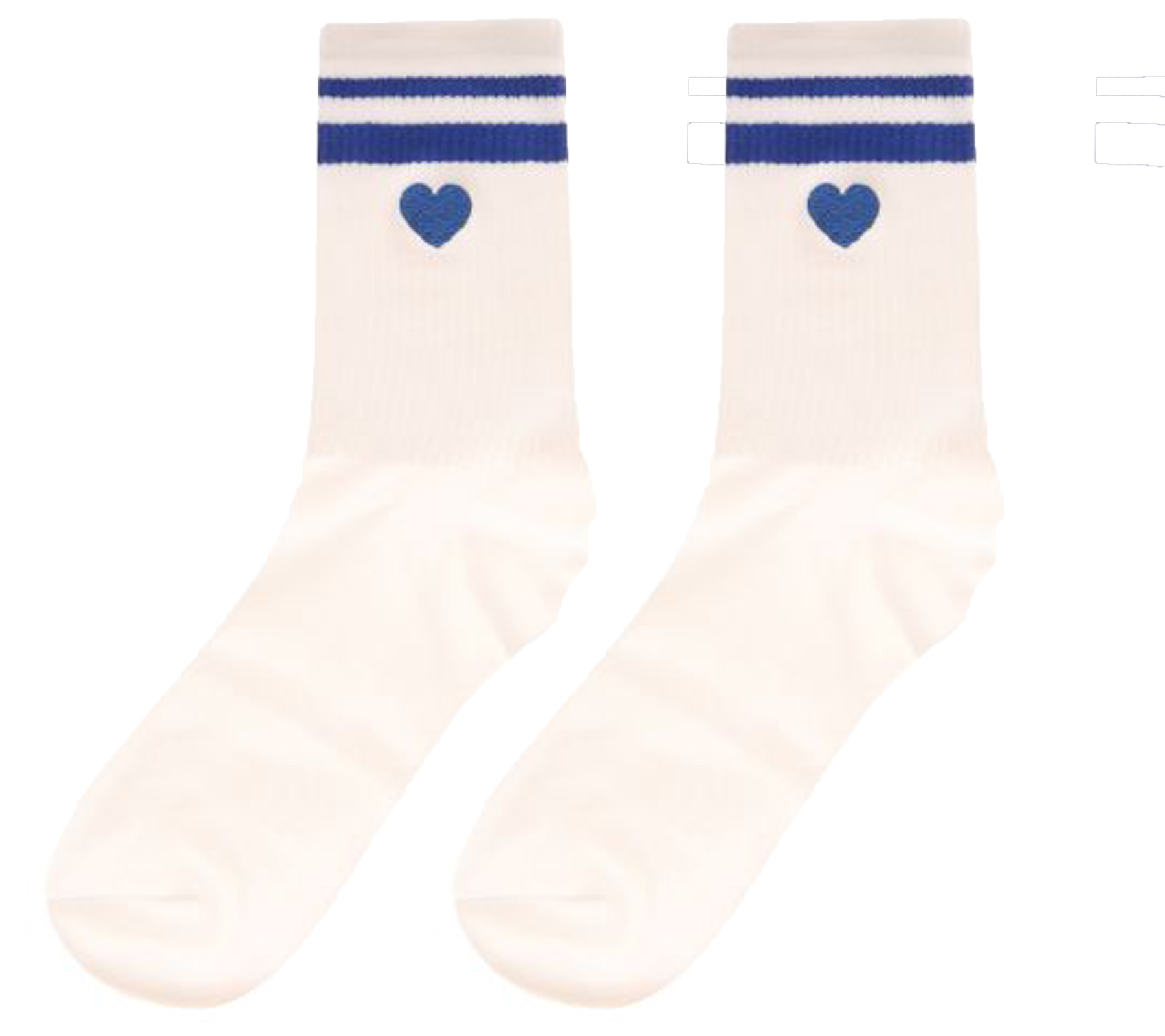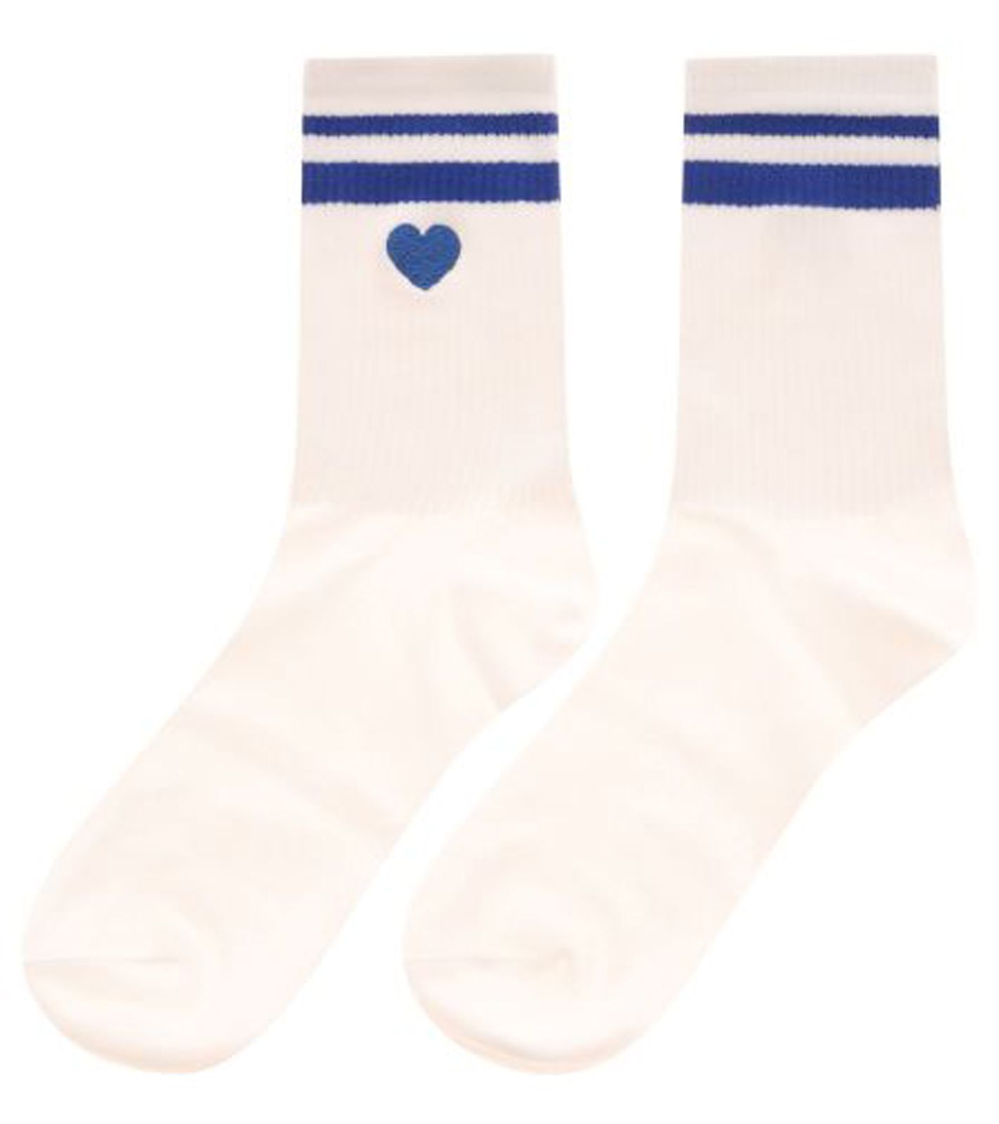 Le cœur bleu est brodé sur une seule face de chaque chaussette.