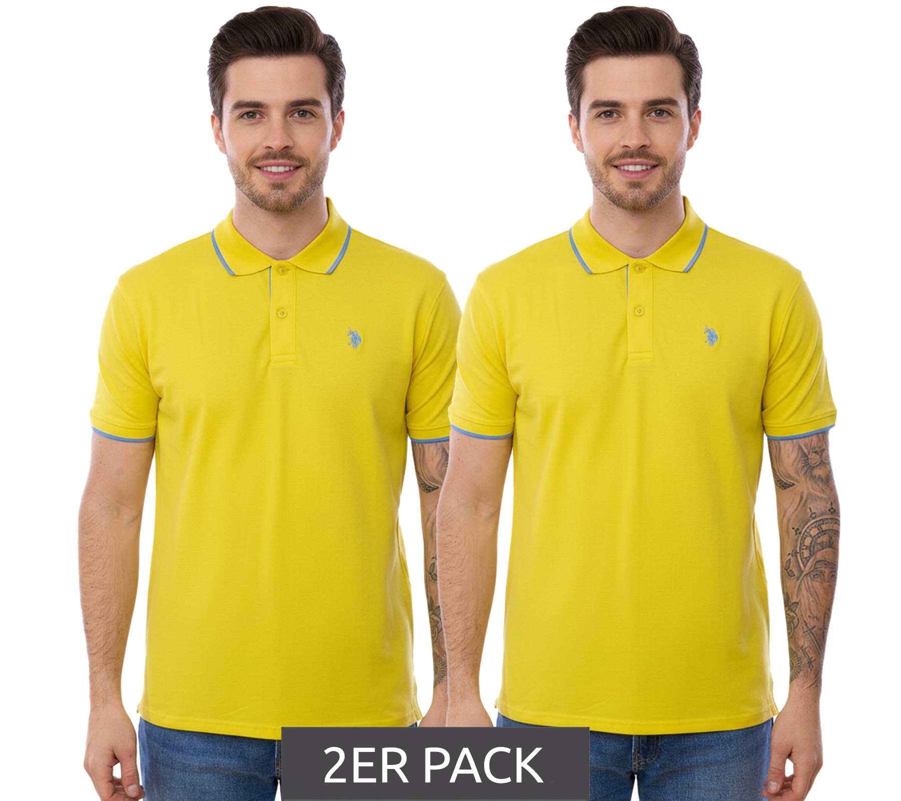 Lot de 2 États-Unis ASSN. DE POLO Polo pour homme Chemise basique Chemise en coton Chemise à manches courtes 197 63899 52520 115 Jaune/Bleu clair