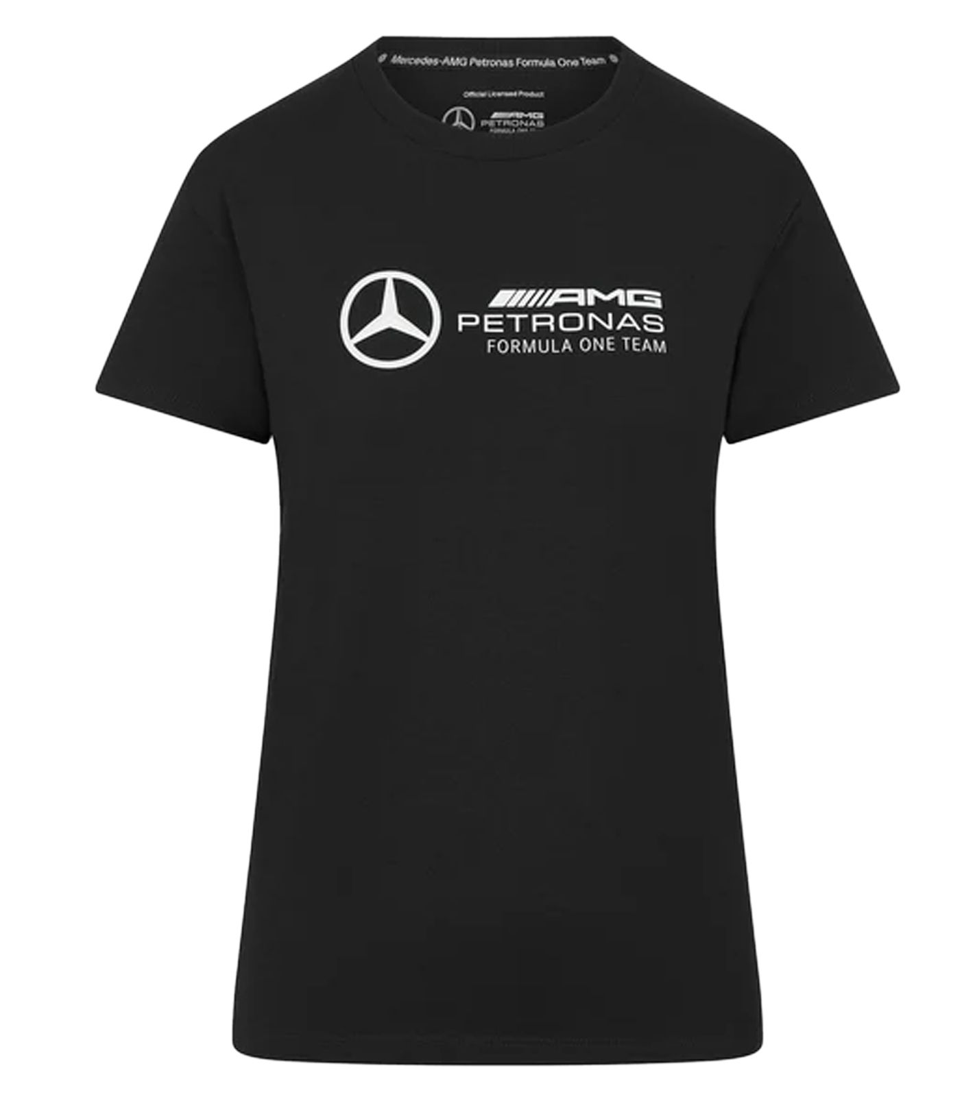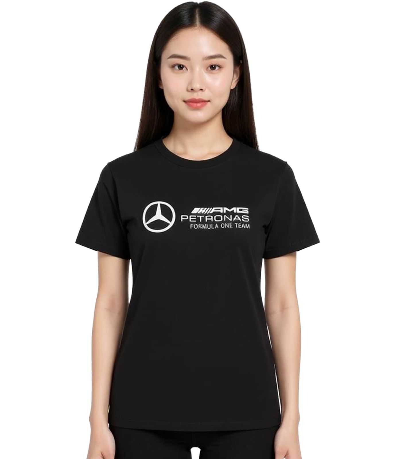 Lot de 2 T-shirts femme Mercedes-Benz AMG Petronas F1 MAPF, 100% coton, grand logo, manches courtes, noir (réf. 701227045 001)