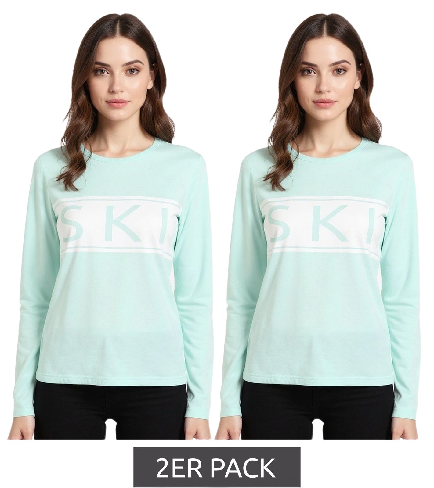 Lot de 2 T-shirts thermiques femme écoresponsables en matière douce et ultra-extensible, coloris vert menthe (réf. 913257)