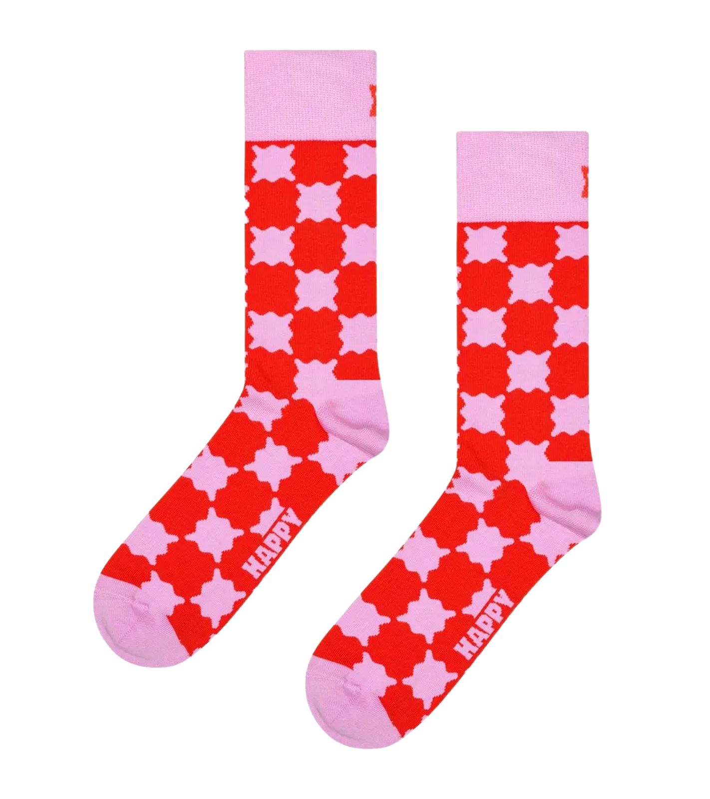 Lot de 3 paires de chaussettes Happy Socks en coton, motifs à carreaux, rayures et cerises, style losanges, présentées dans un coffret cadeau (P002655), bleu/rouge/blanc.