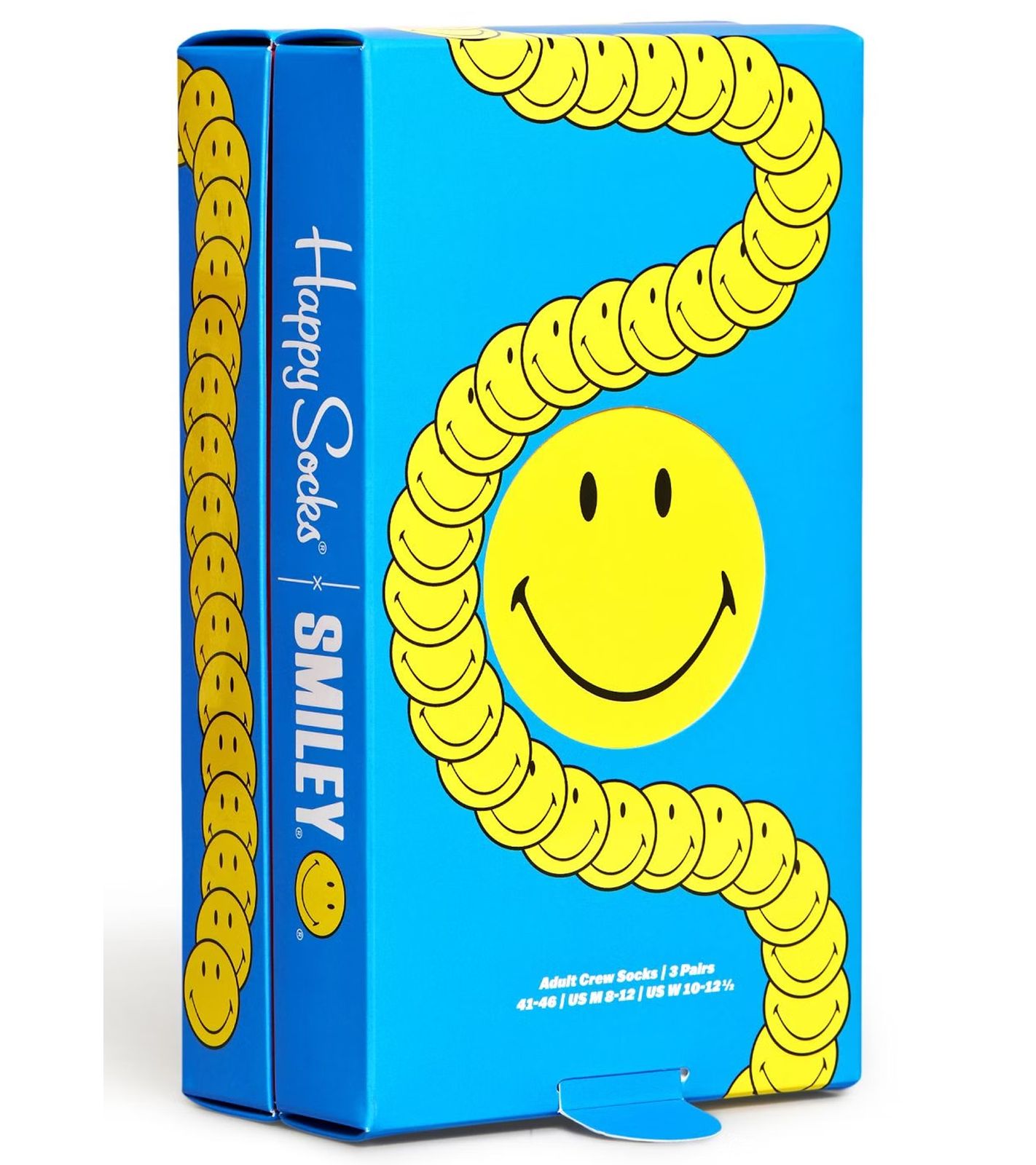 Lot de 3 paires de chaussettes Happy Socks unisexes en coton, imprimé smiley, pour tous les jours, présenté dans une boîte cadeau XSMY08-6700 (Jaune/Noir/Bleu)