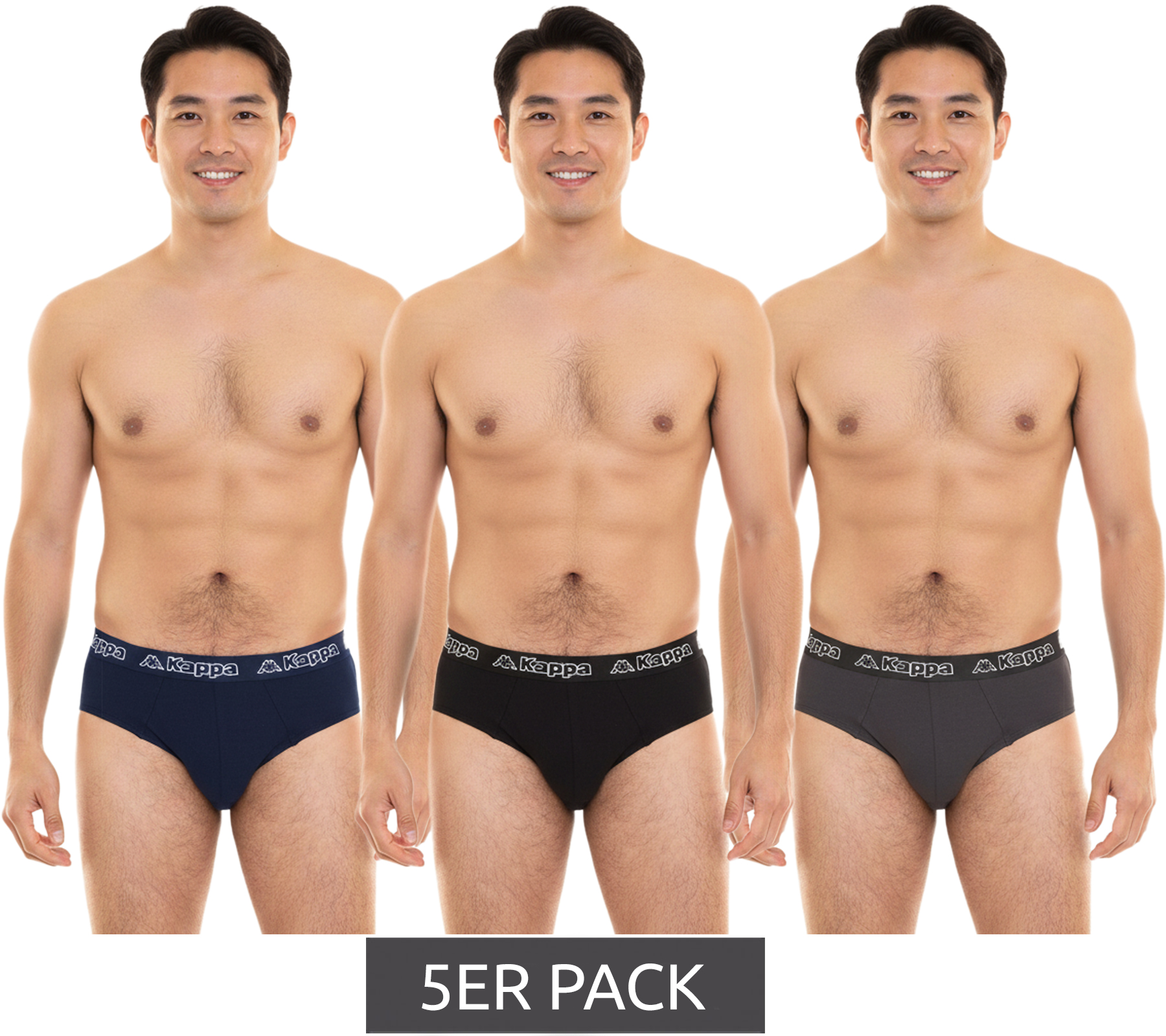 Lot de 5 slips Kappa en coton stretch pour homme avec ceinture logotée 711167, noir, bleu ou gris