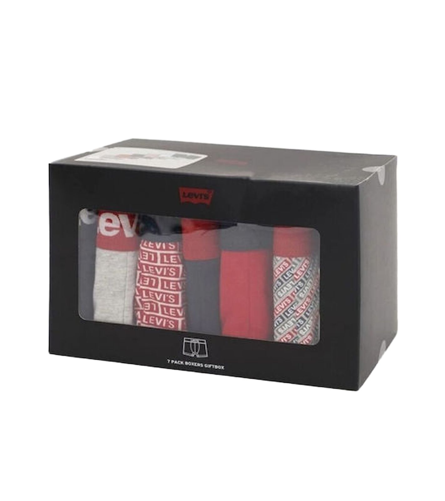 Lot de 7 boxers homme LEVI'S en coton avec ceinture colorée, dans un coffret cadeau. 701225625 004 Bleu marine/Rouge/Blanc/Gris