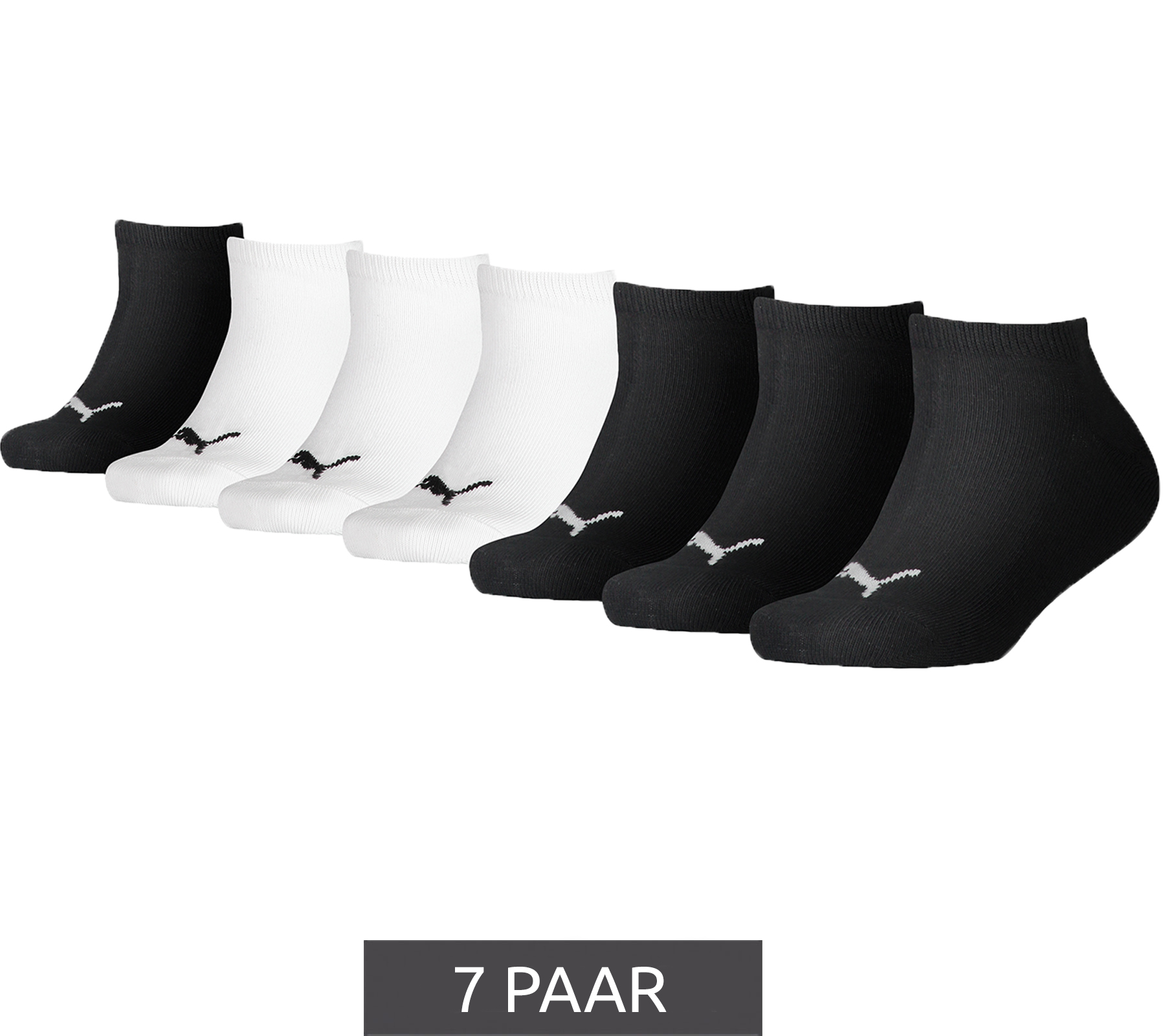 Lot de 7 paires de chaussettes PUMA pour enfants (filles et garçons), en coton à coutures plates, référence 701222093 001, noir et blanc
