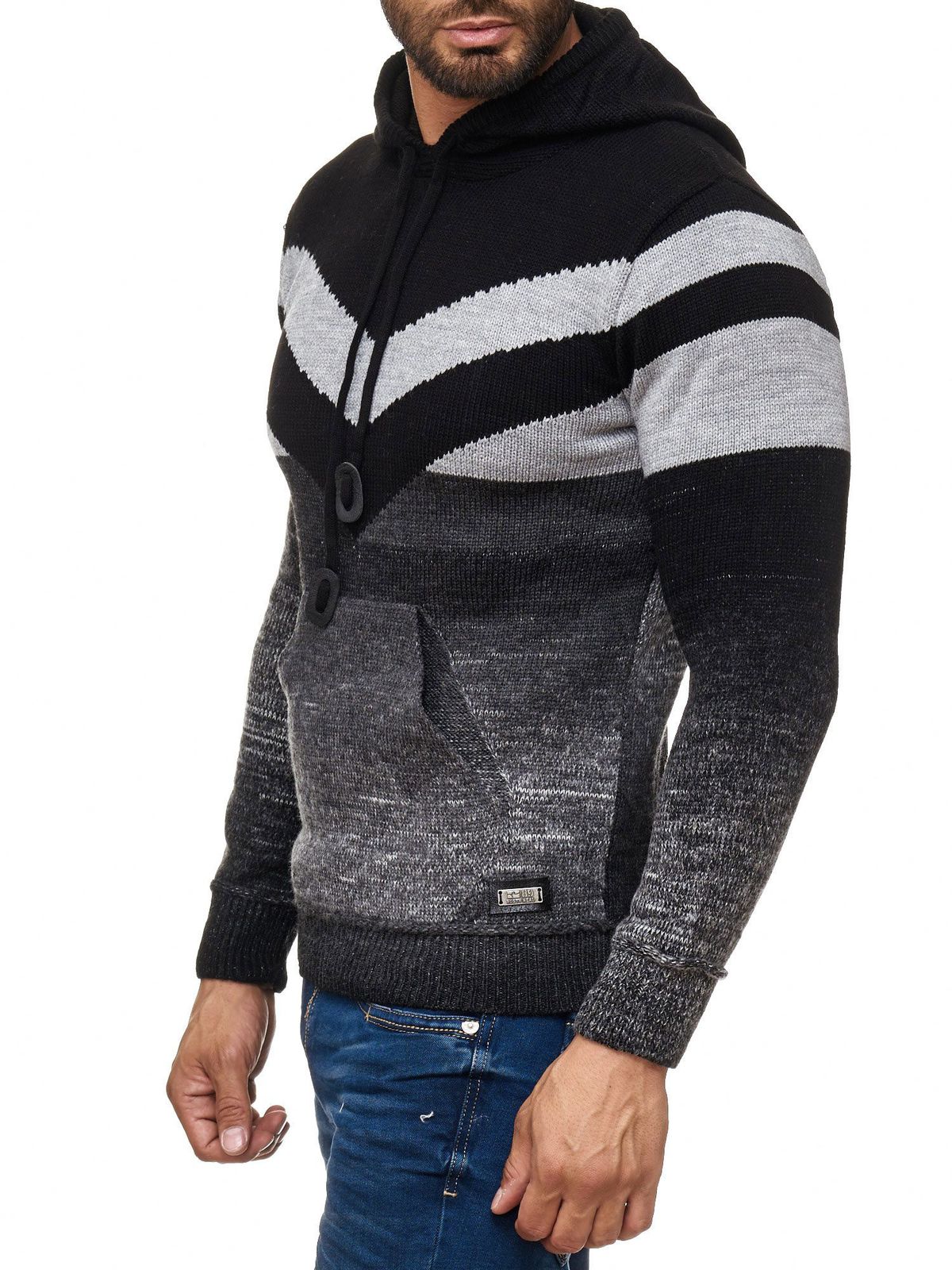 Pull à capuche en maille sportive pour homme, style colorblock, avec poche kangourou, référence 13311 Noir