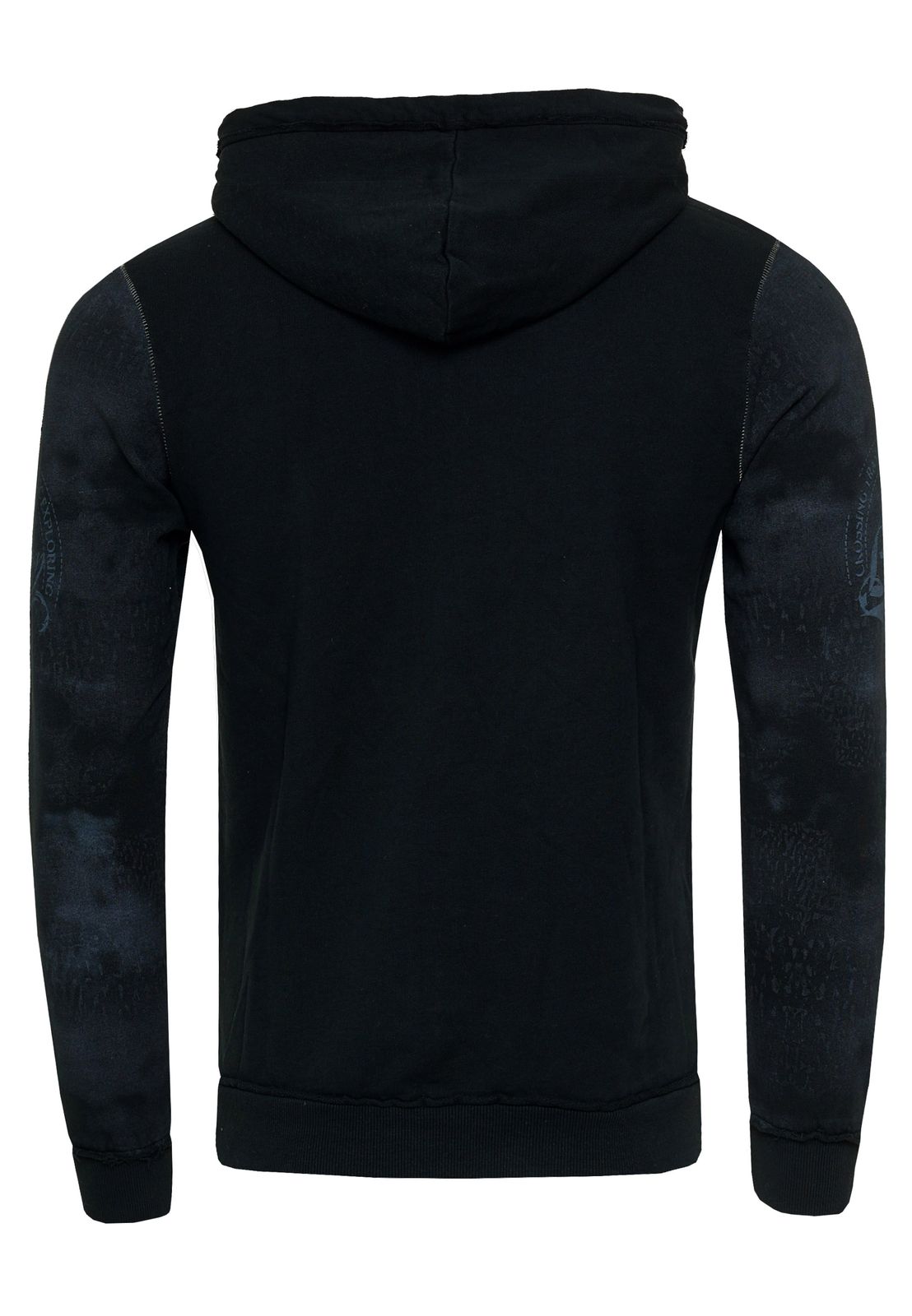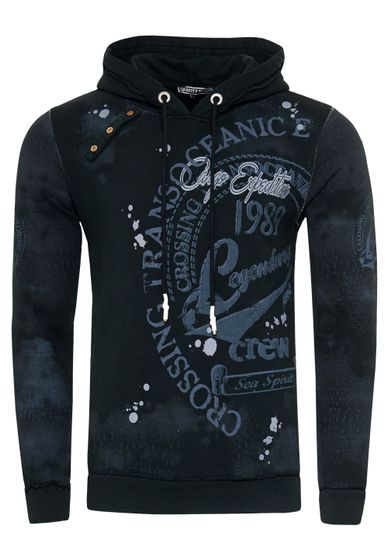 Pull à capuche exclusif pour homme, en denim délavé à l'huile, avec patte de boutonnage et imprimé marin 19128 Noir
