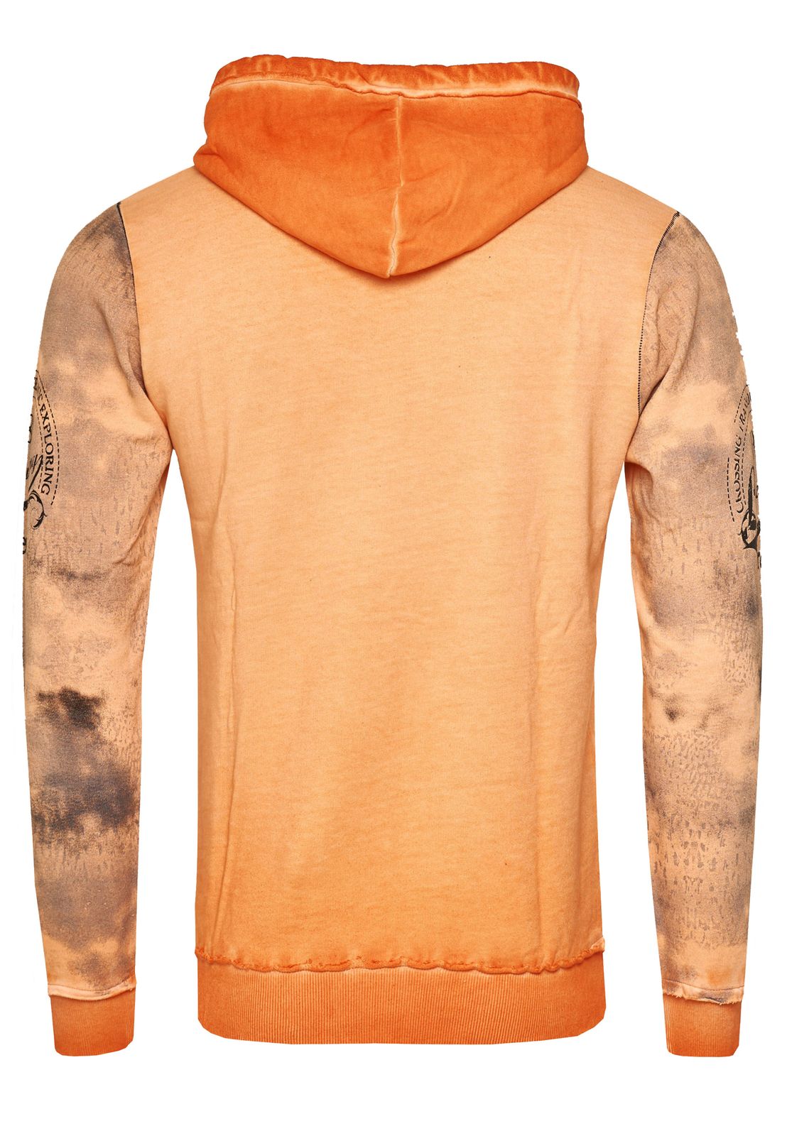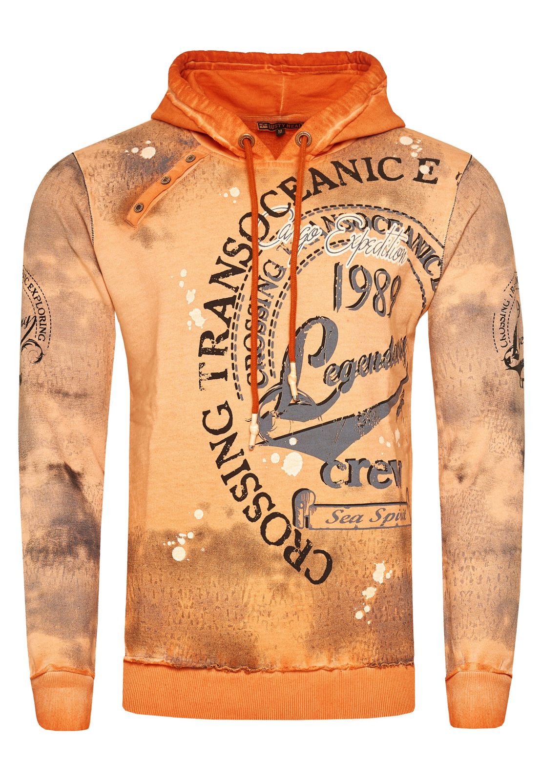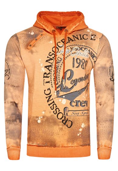 Pull à capuche exclusif pour homme, en denim délavé à l'huile, avec patte de boutonnage et imprimé marin 19128 Orange