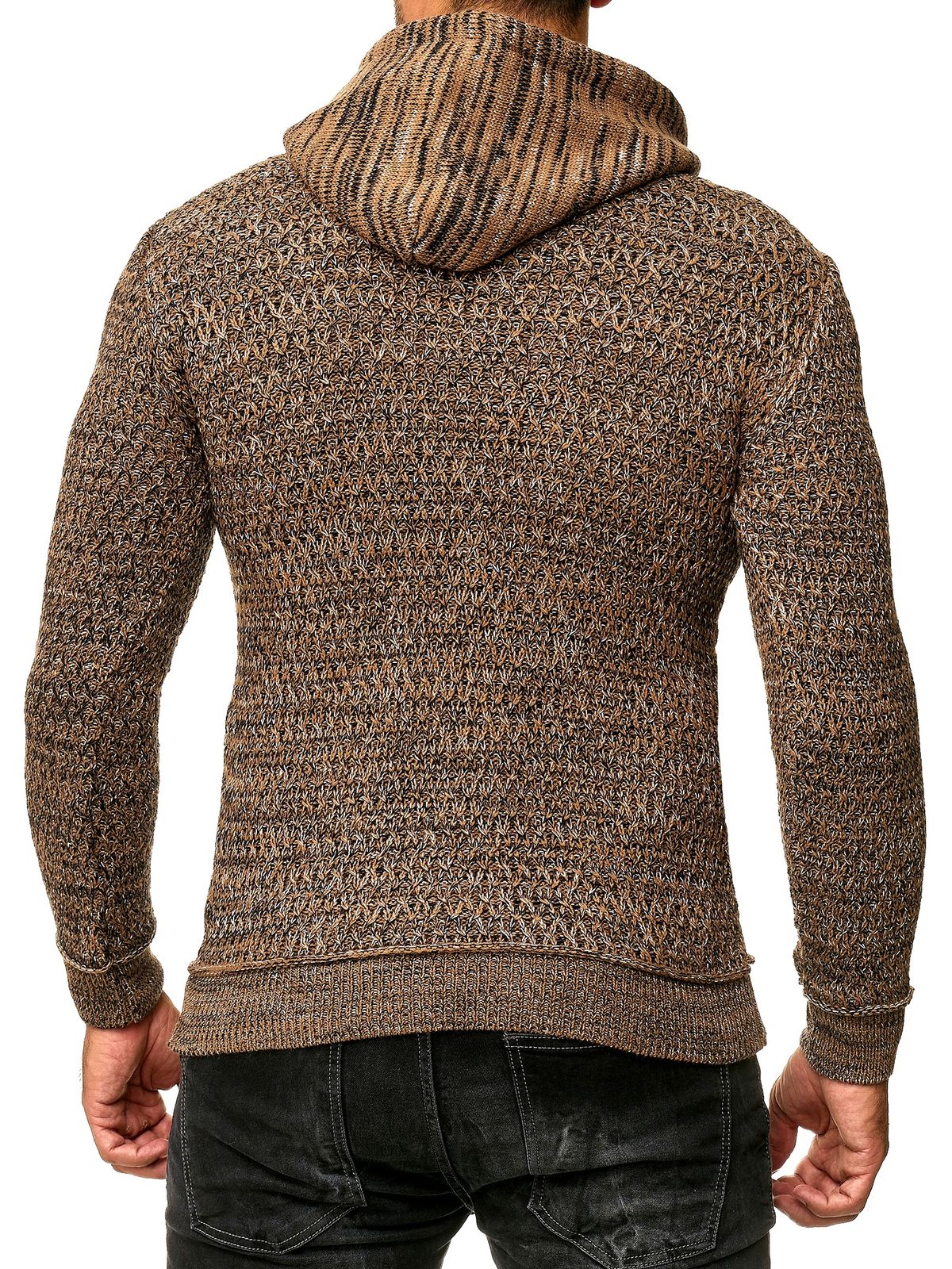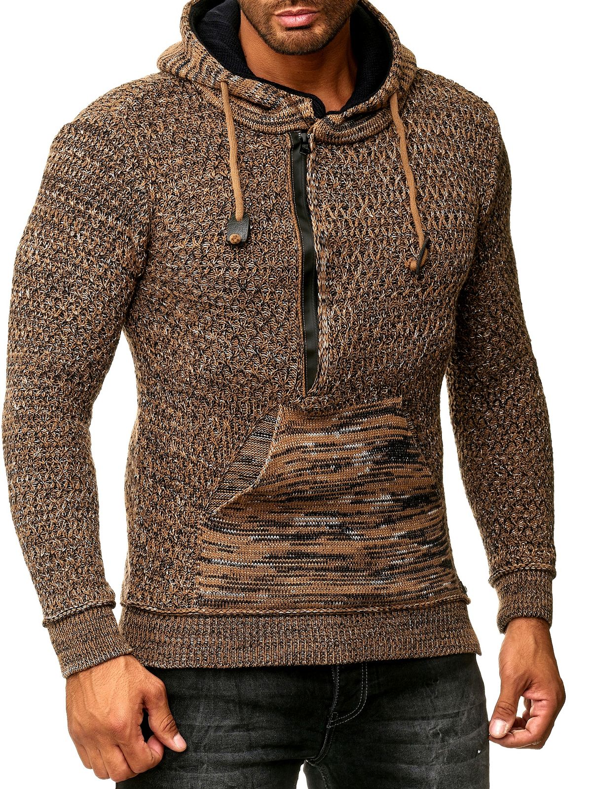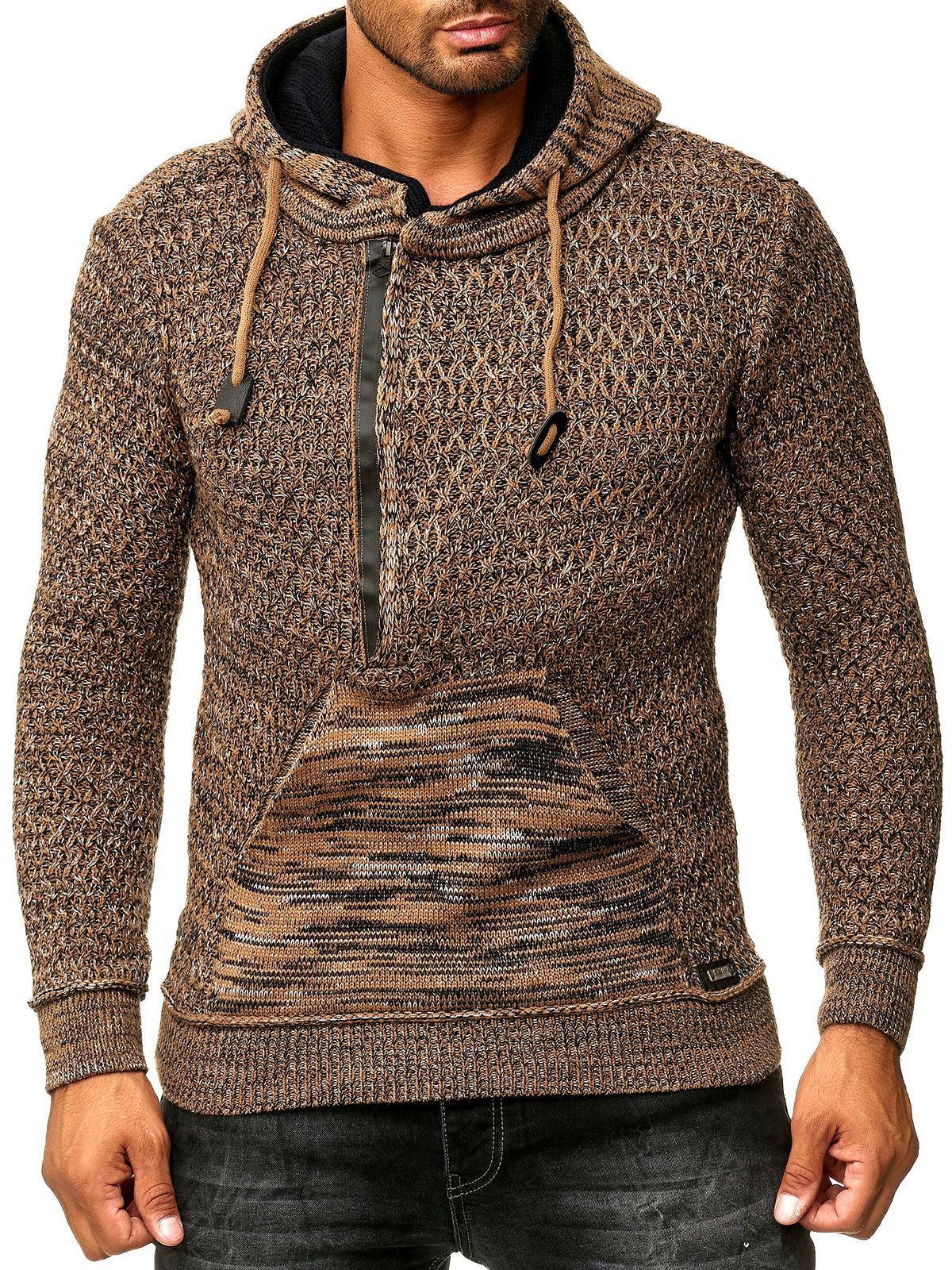 Pull à capuche sportif pour homme, demi-zip, maille texturée, réf. 13323, marron