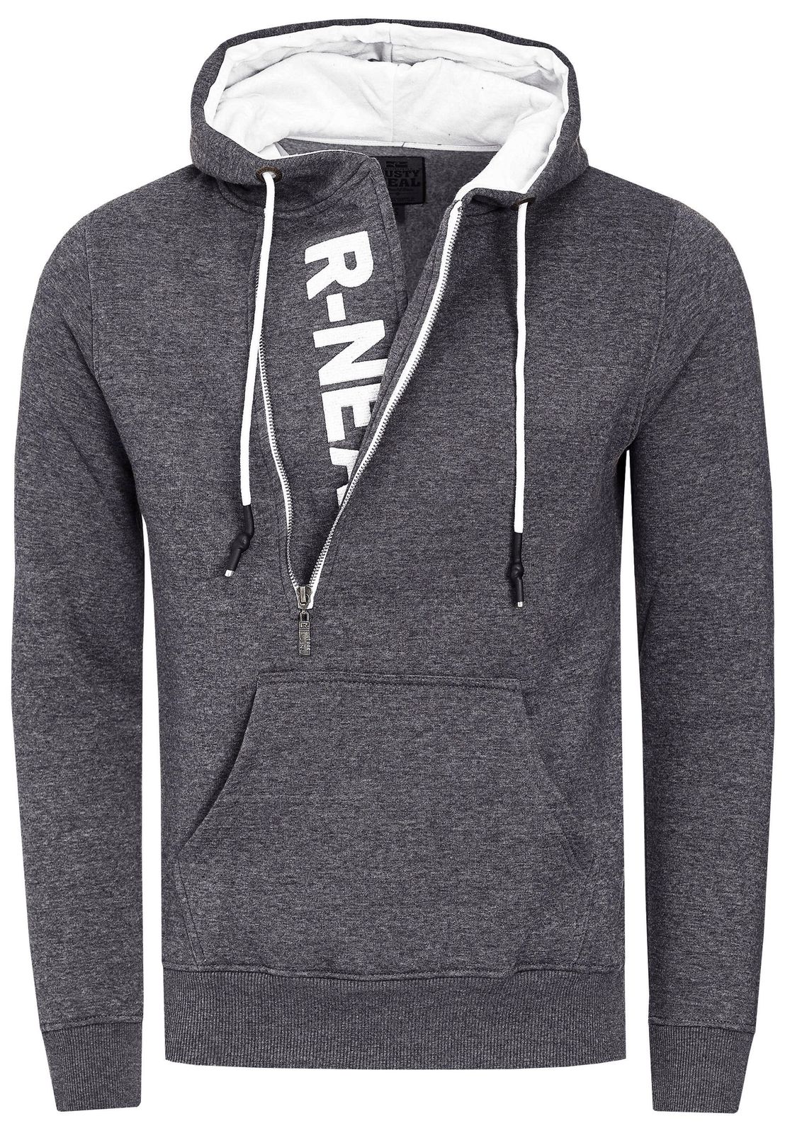 Pull à capuche tendance pour homme avec fermeture éclair latérale, modèle 7006 anthracite chiné
