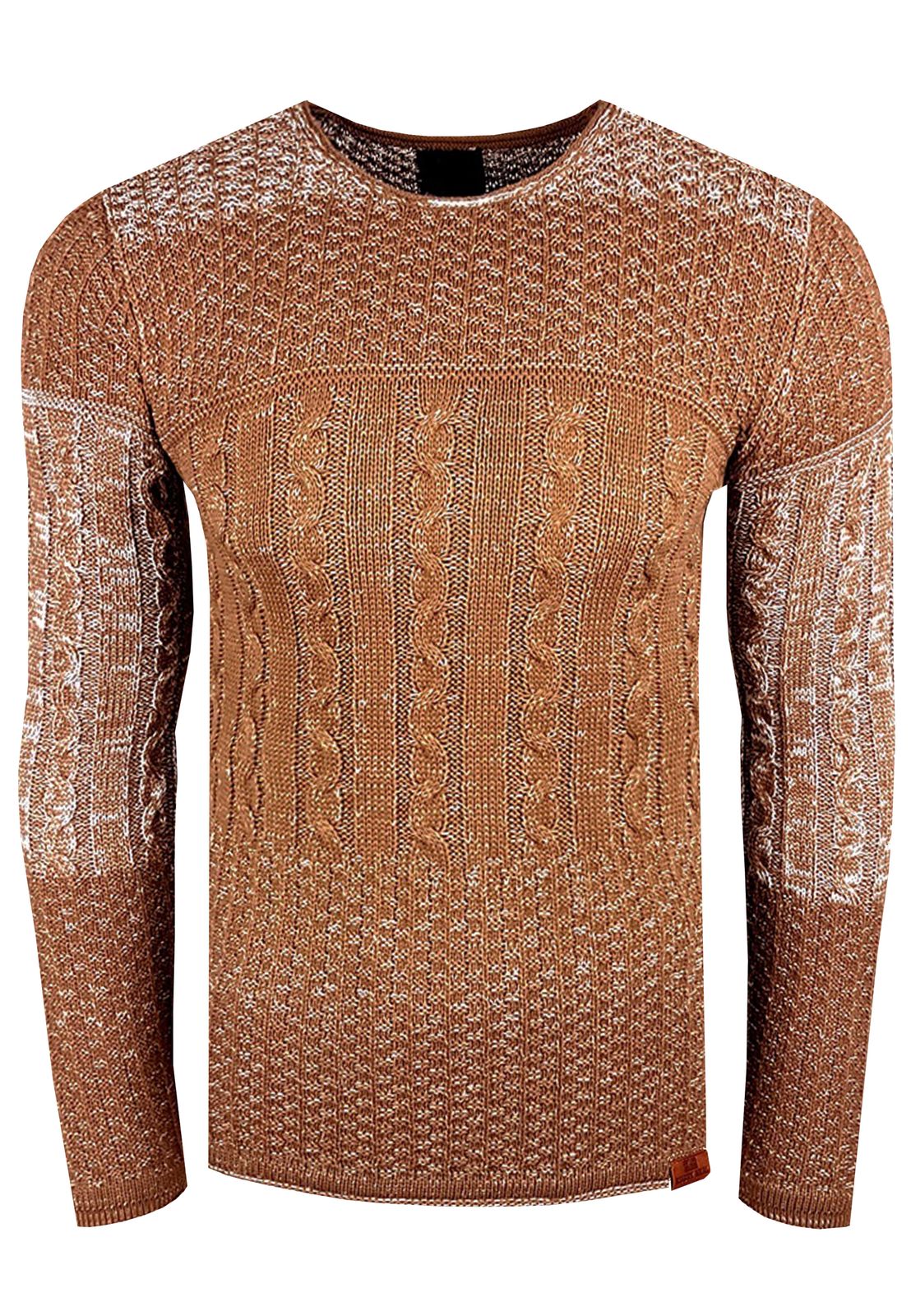 Pull classique pour homme en maille torsadée, coupe ajustée, col rond, motif texturé, 13265 Camel