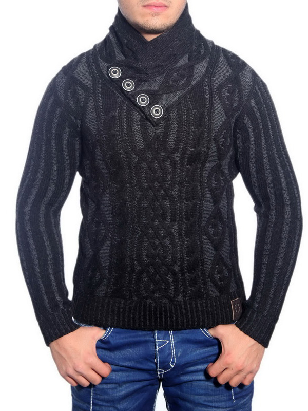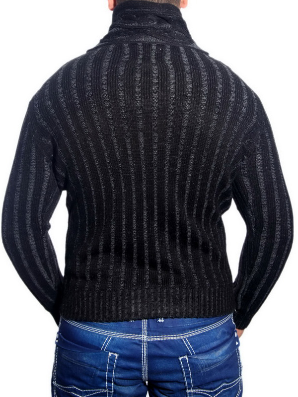 Pull élégant pour homme en maille torsadée, col montant, modèle 3176 Noir