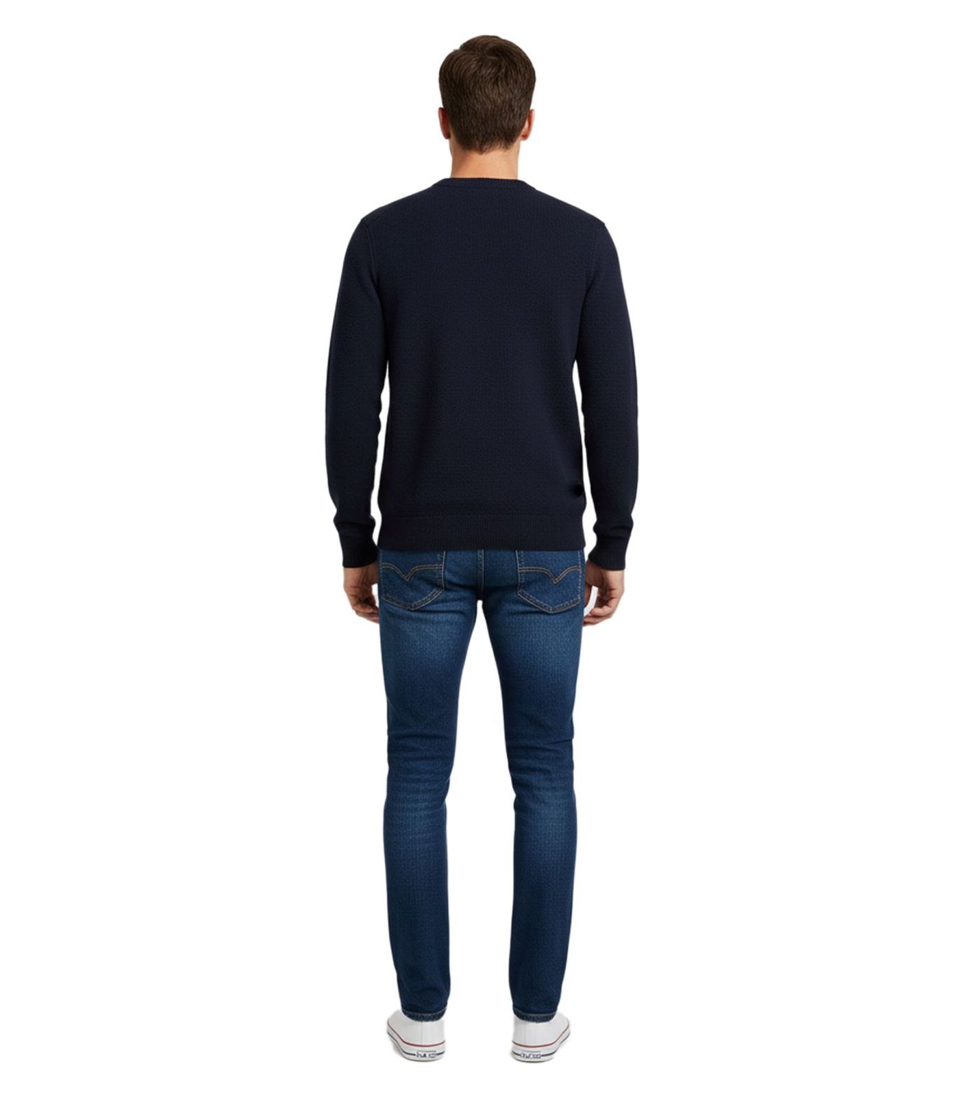 Pull en maille ESPRIT pour homme, col rond, 100 % coton, bleu foncé