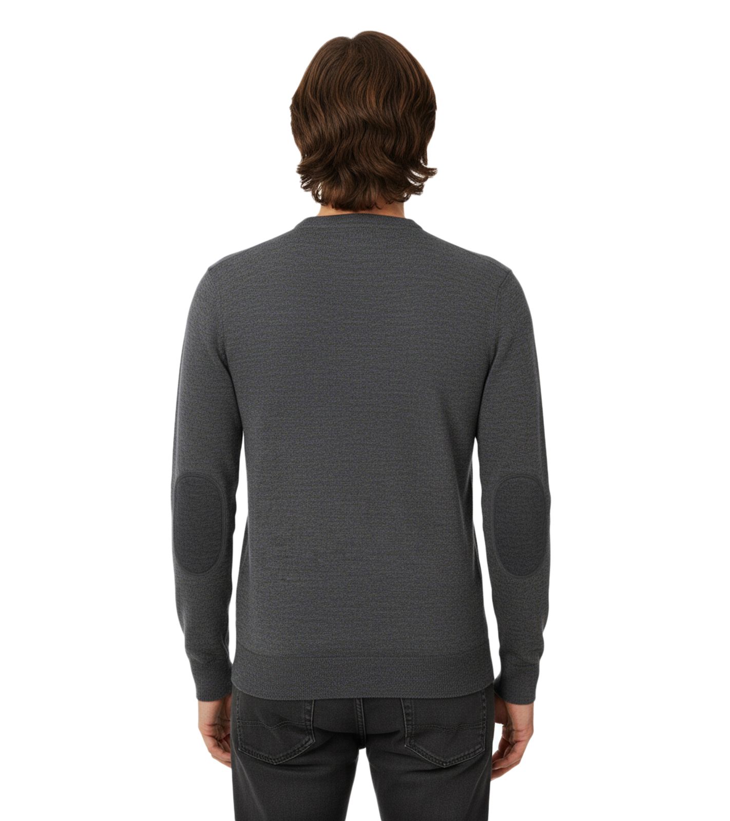 Pull en maille pour homme avec empiècements ton sur ton aux coudes, laine mérinos 0144328003 328 Gris