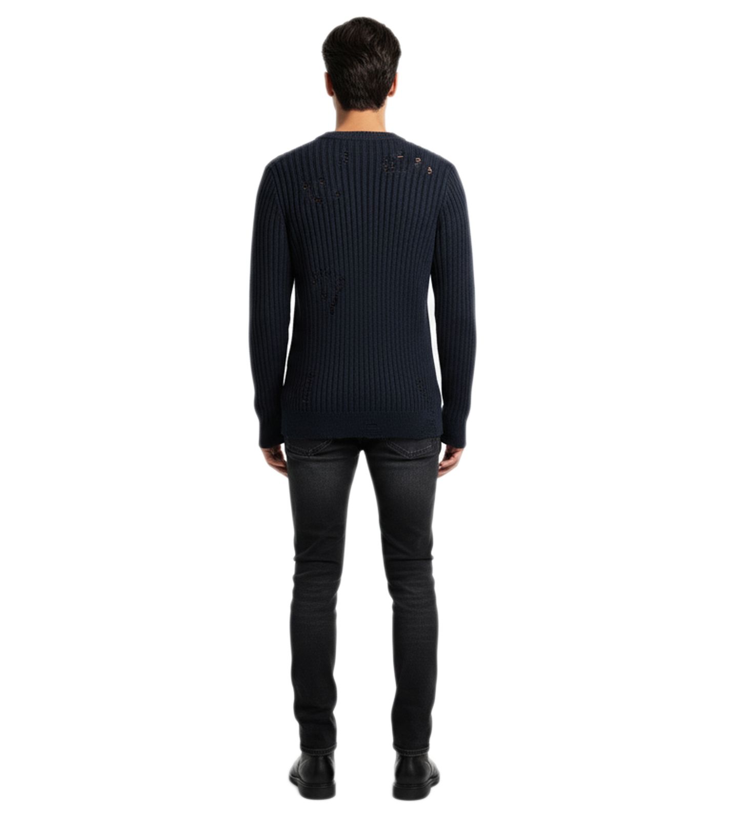 - Pull en maille style motard urbain pour homme, au look usé moderne.