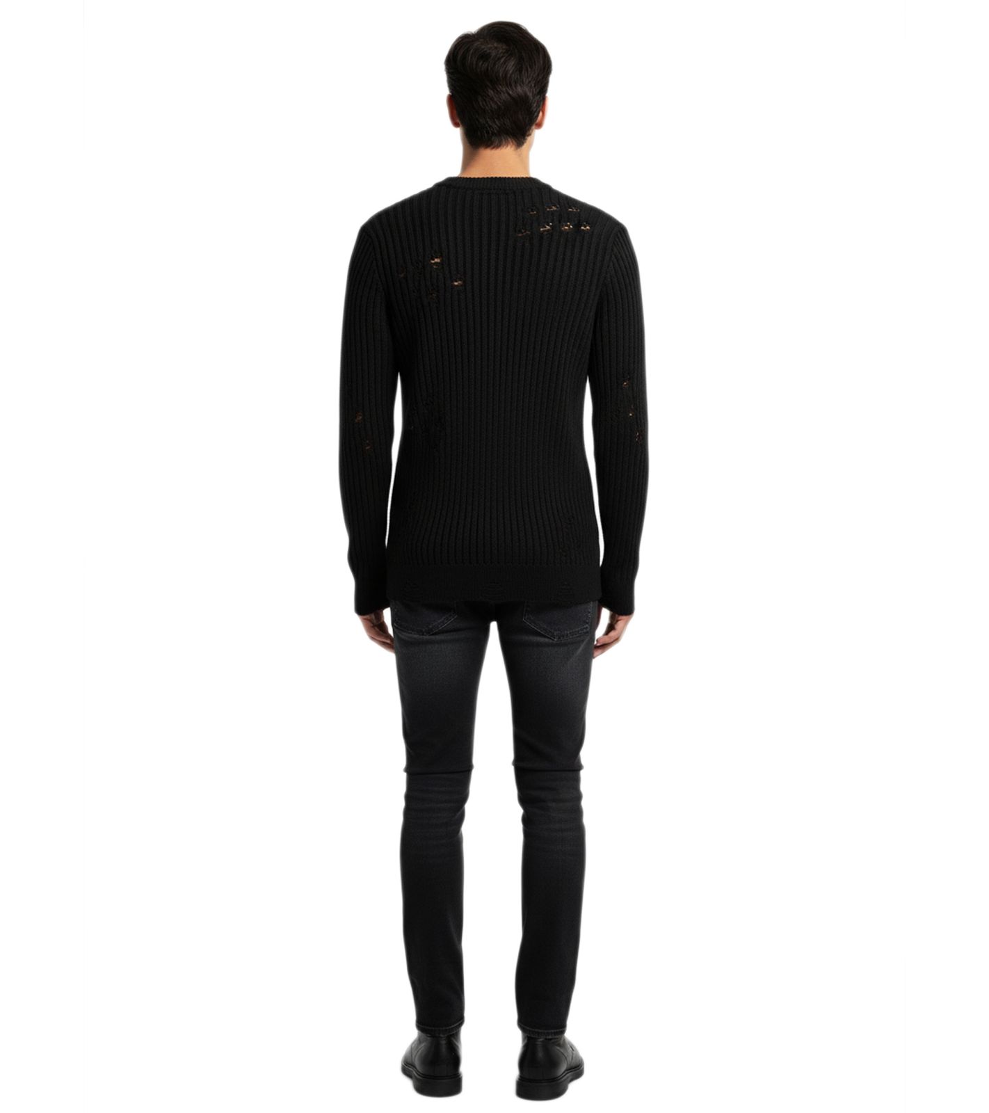 Pull en maille style motard urbain pour homme, col rond, look délavé moderne avec détails usés 13296 Noir