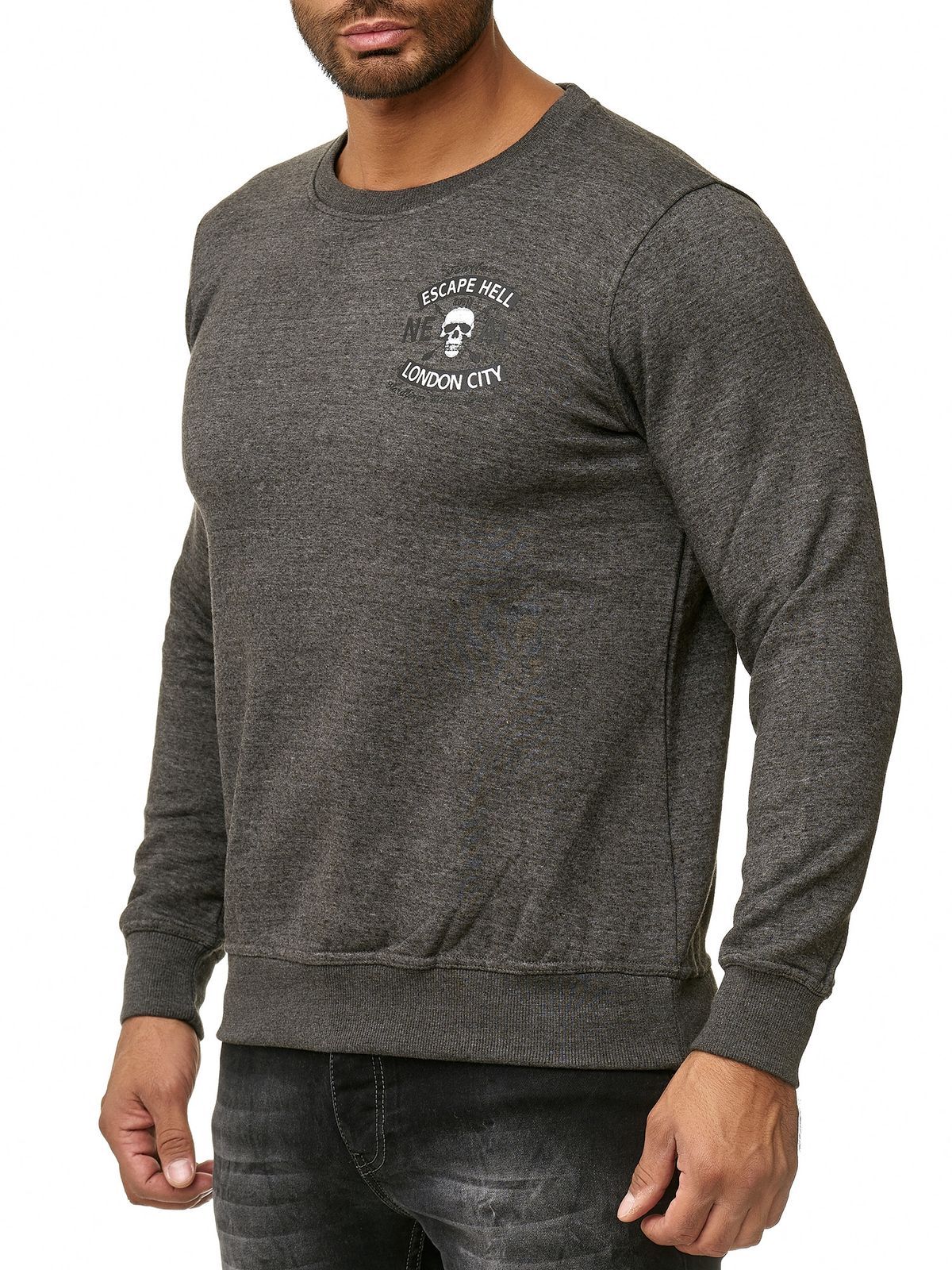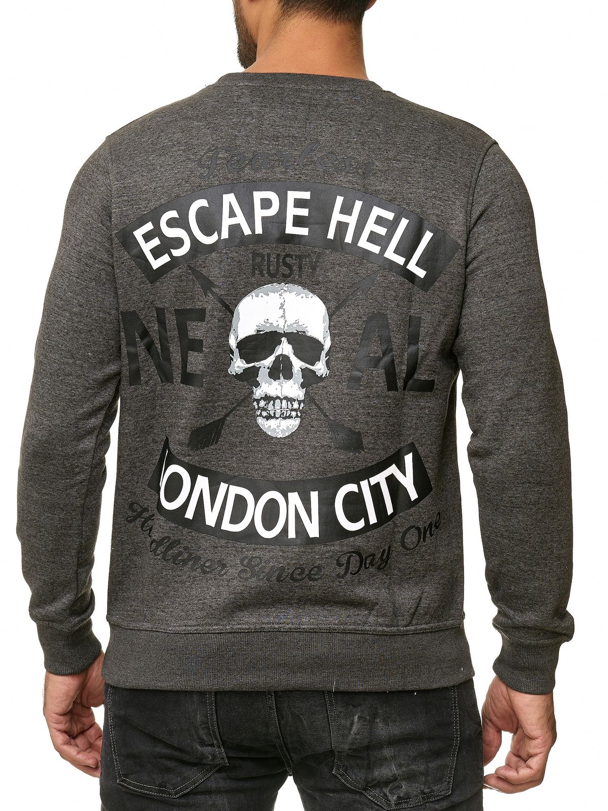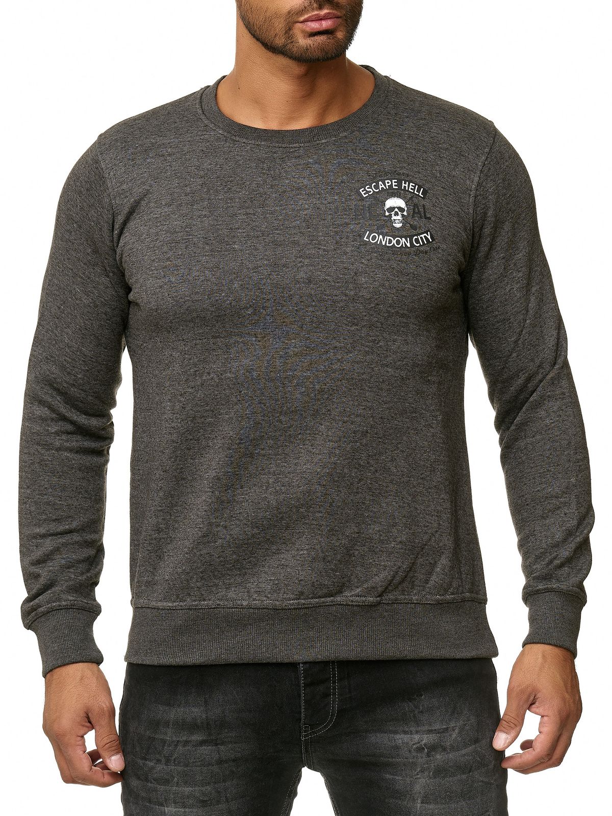 Pull homme à col rond tendance, imprimé tête de mort et grand imprimé au dos, référence 19104, couleur anthracite