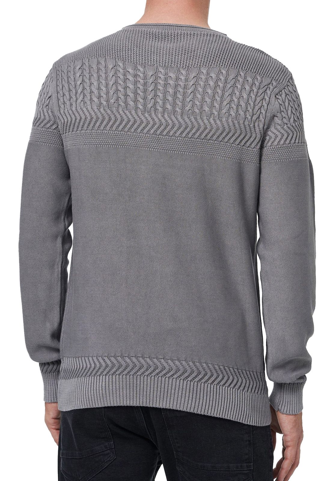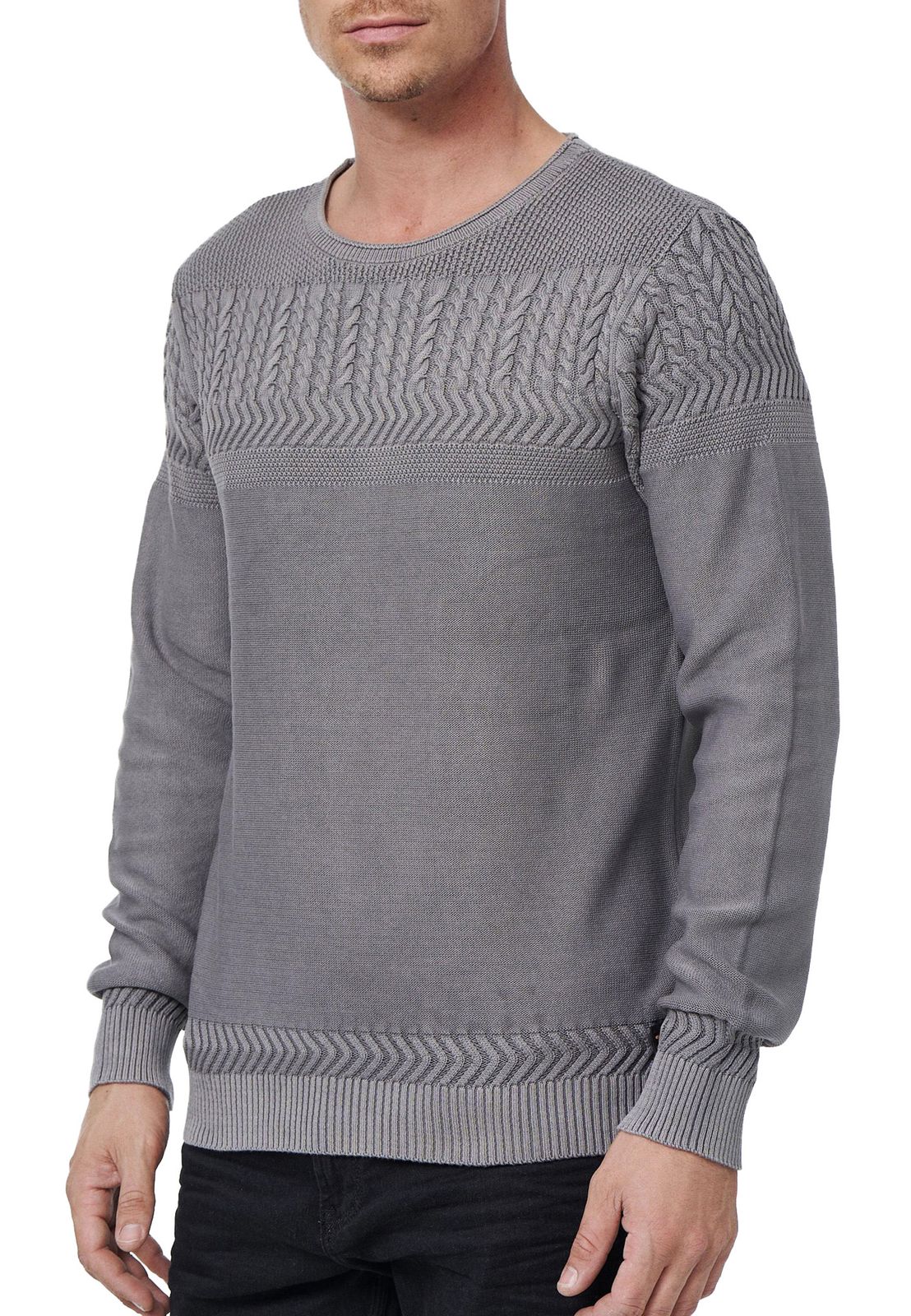 -93% Pull homme à col rond tendance, maille fine anthracite, référence 13393