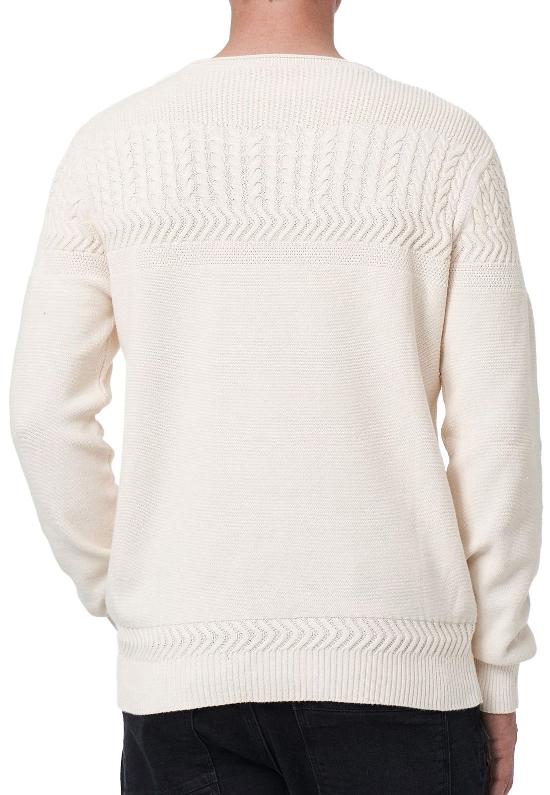 -93% Pull homme à col rond tendance, maille fine, référence 13393 Écru