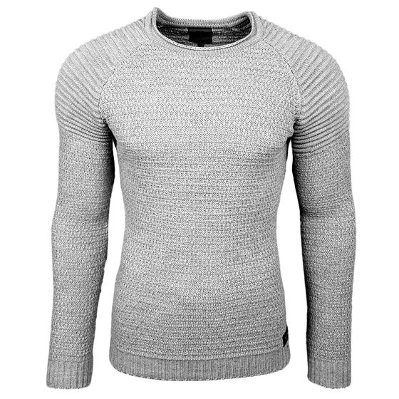 Pull homme en maille fine à col rond, style motard, streetwear, gris 6240