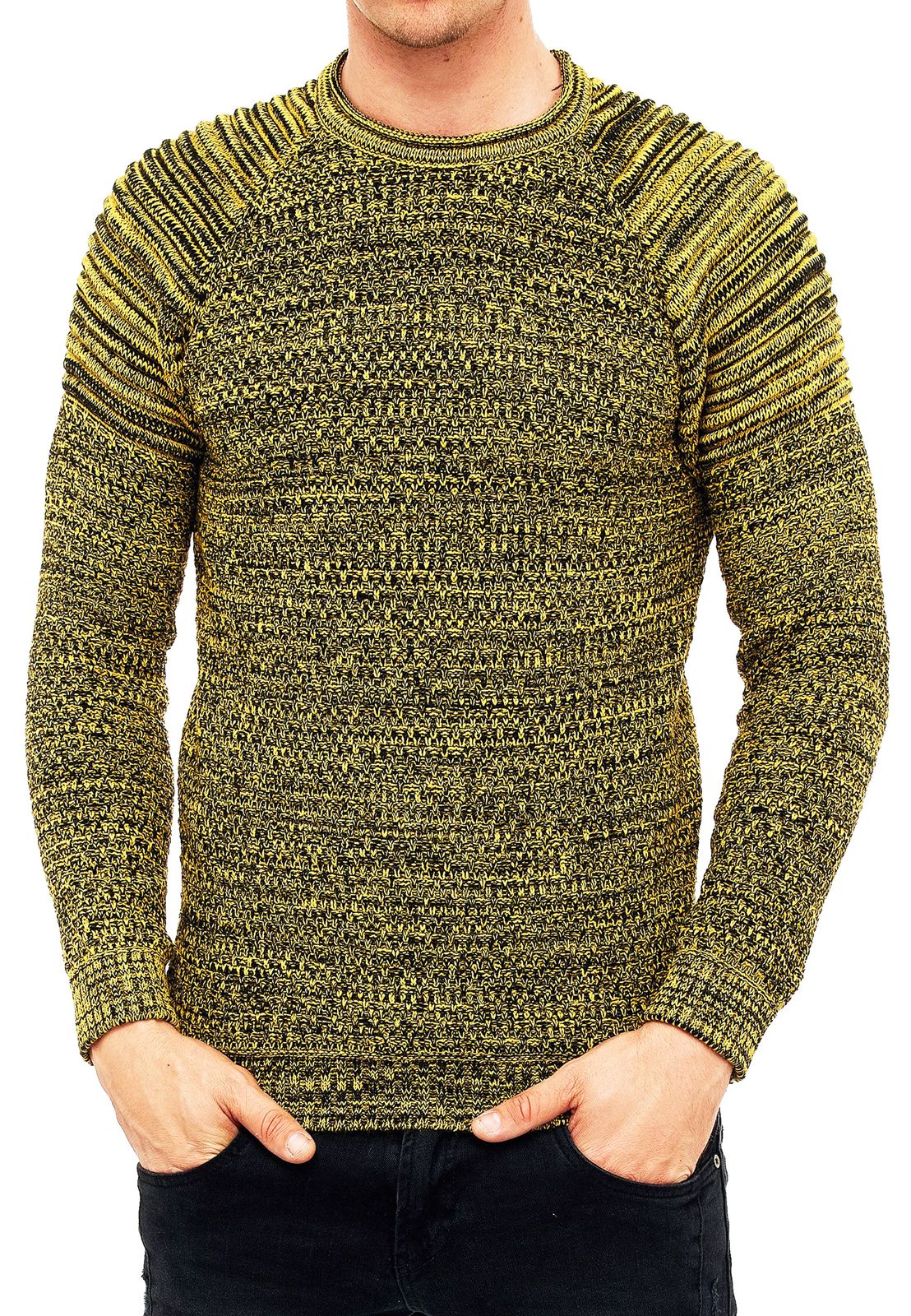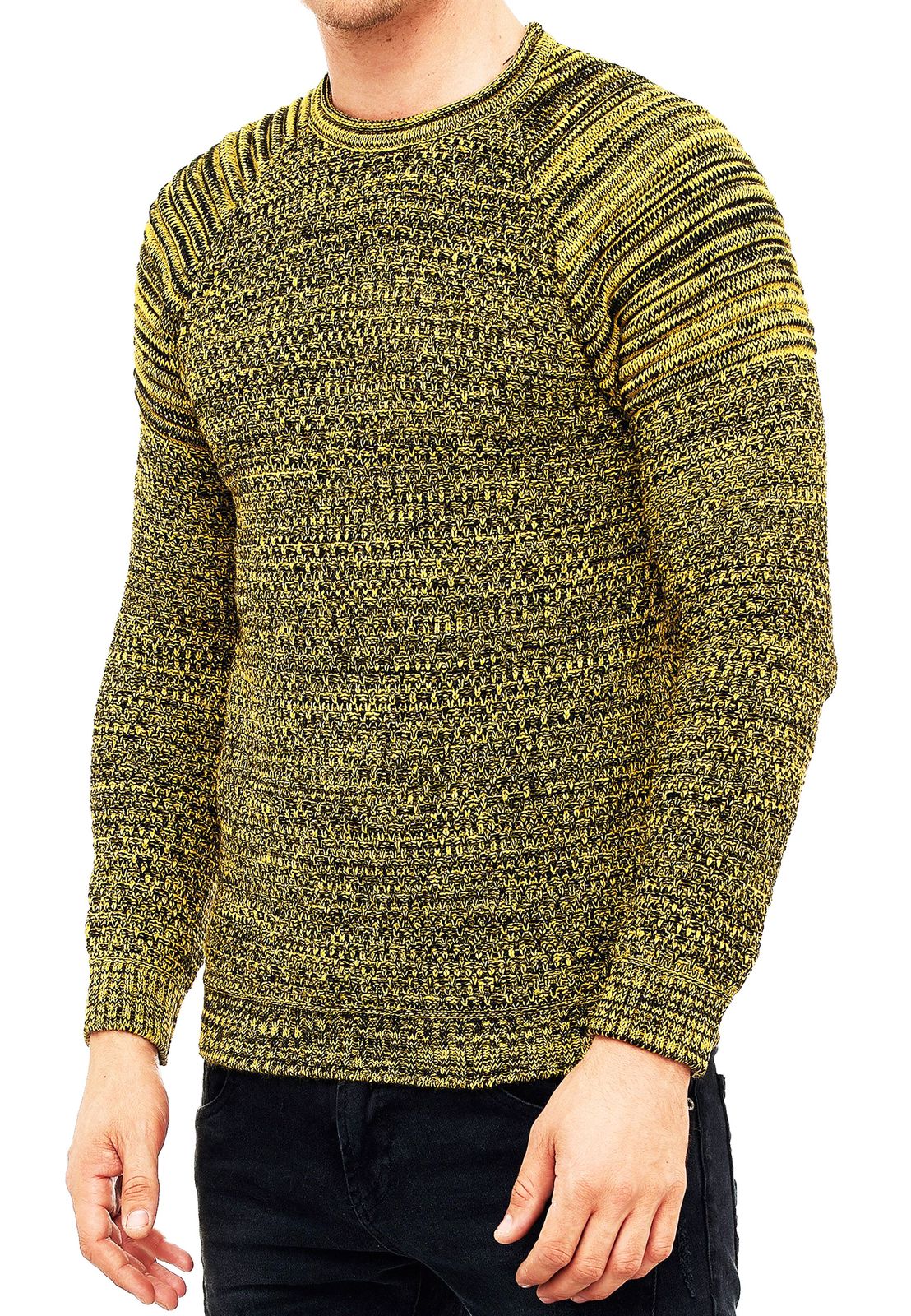 Pull homme en maille fine à col rond, style motard, streetwear, jaune 6240
