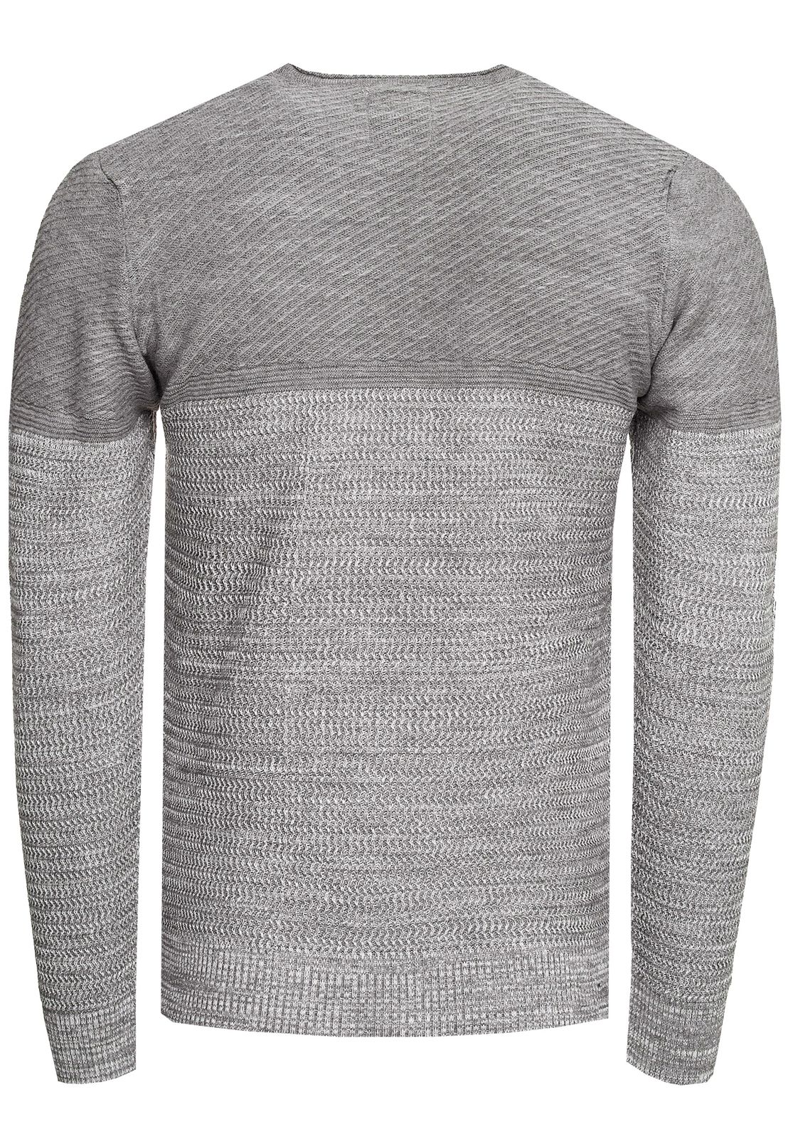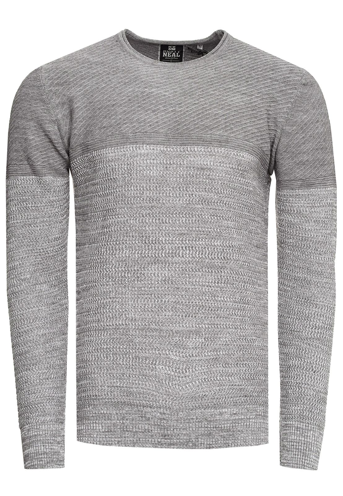Pull homme en maille fine, col rond, color block, gris 13376