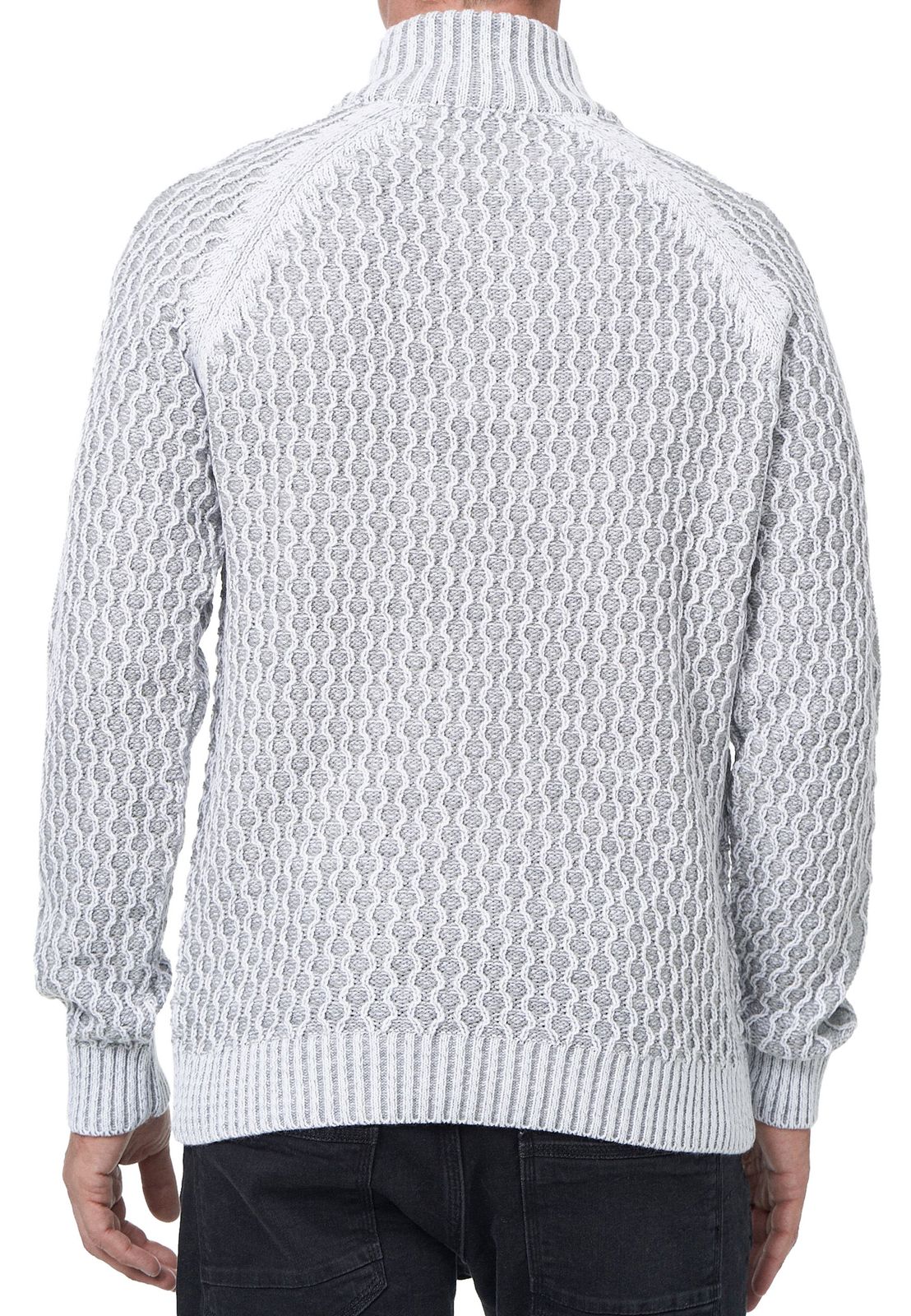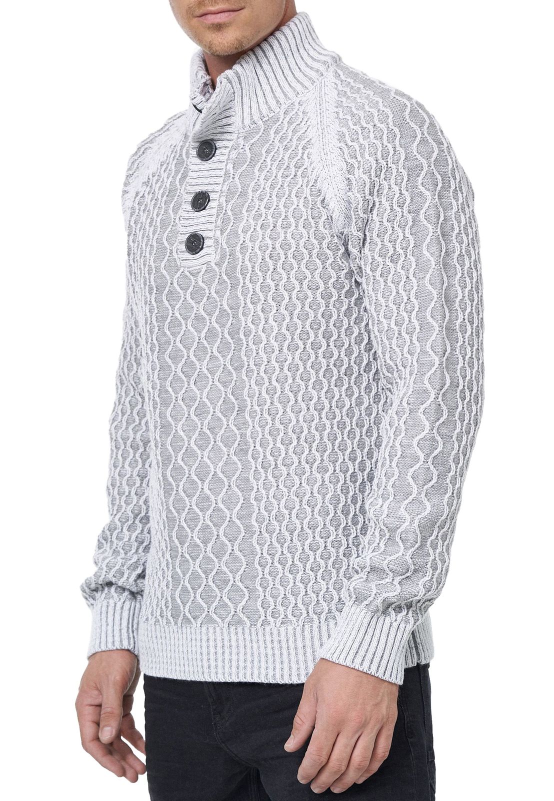 Pull homme en maille texturée, col montant et patte de boutonnage. Modèle contrasté. 13394 Blanc