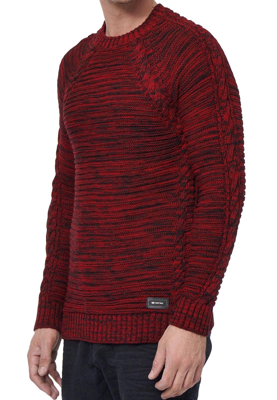 Pull homme moderne en grosse maille, col rond, coupe ajustée, orné de torsades (réf. 13386, rouge).