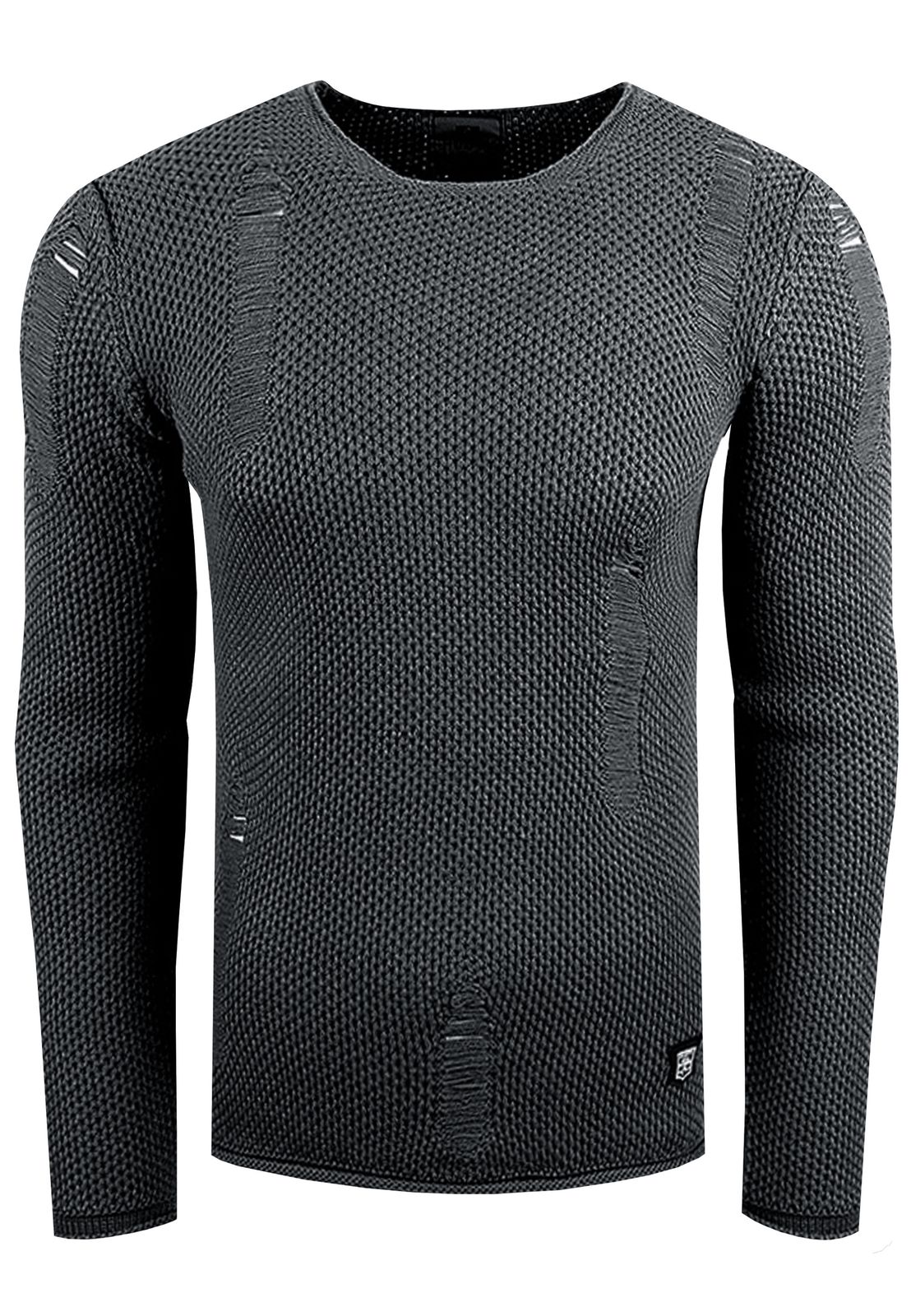 Pull homme moderne en maille texturée, coupe ajustée, effet usé, référence 13249 anthracite
