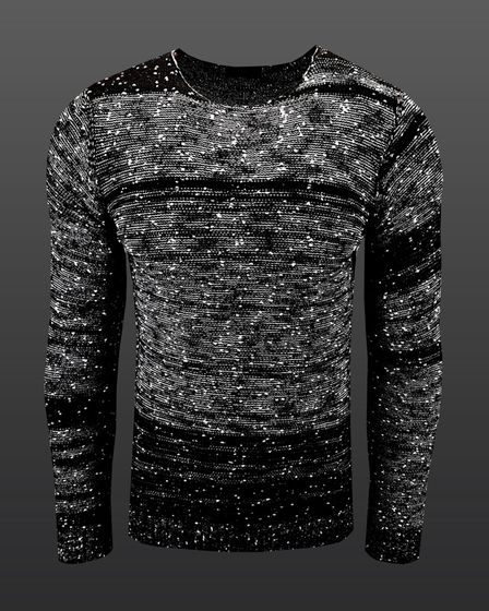 Pull homme polyvalent à col rond et à pois, en maille noire 6245