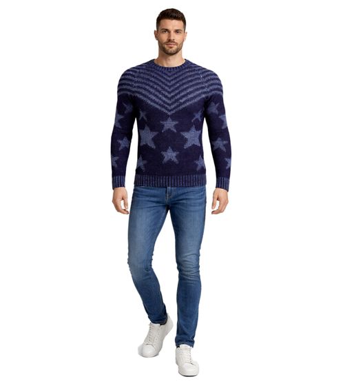 Pull homme tendance à col rond, motif « USA Stars & Stripes », pull tricoté 6263 bleu