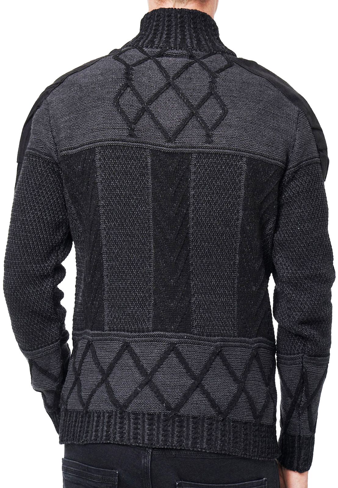 Pull homme unique en maille, col montant, coupe classique, motif, référence 13388, noir