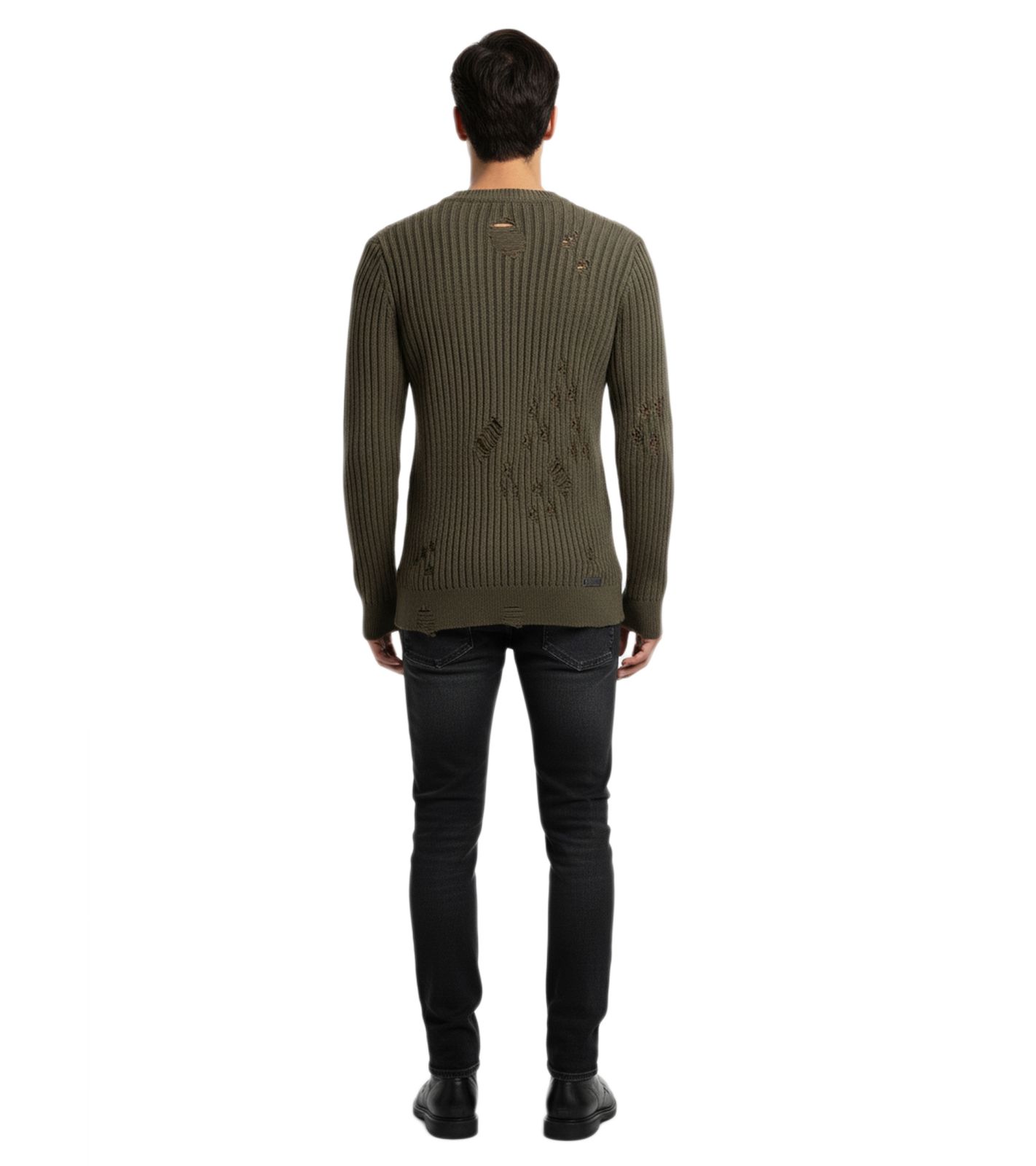 Pull motard urbain pour homme, col rond, style délavé moderne avec détails usés 13293 Kaki