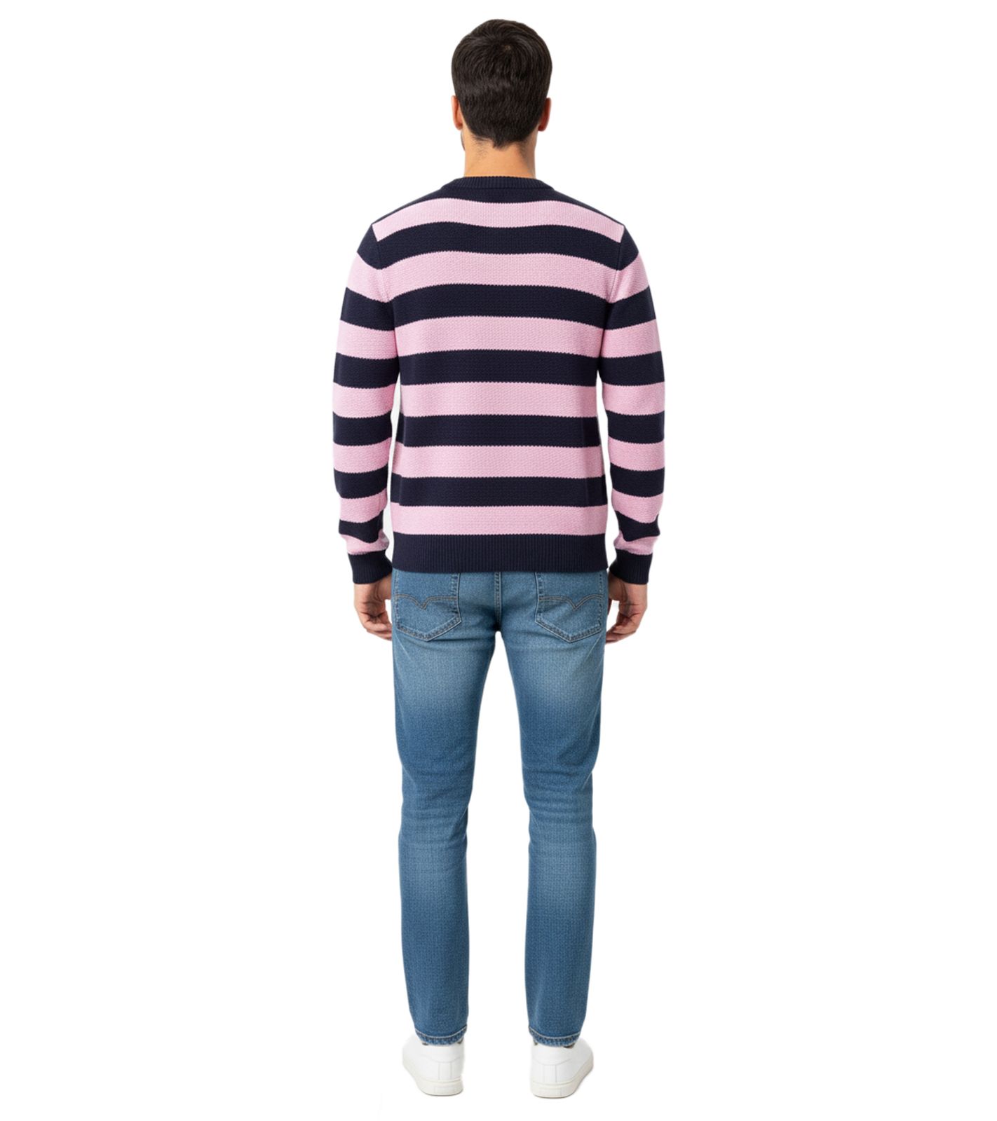 Pull rayé ESPRIT pour homme, col rond, 100 % coton, disponible en bleu foncé/rose, blanc/gris ou bleu foncé/blanc