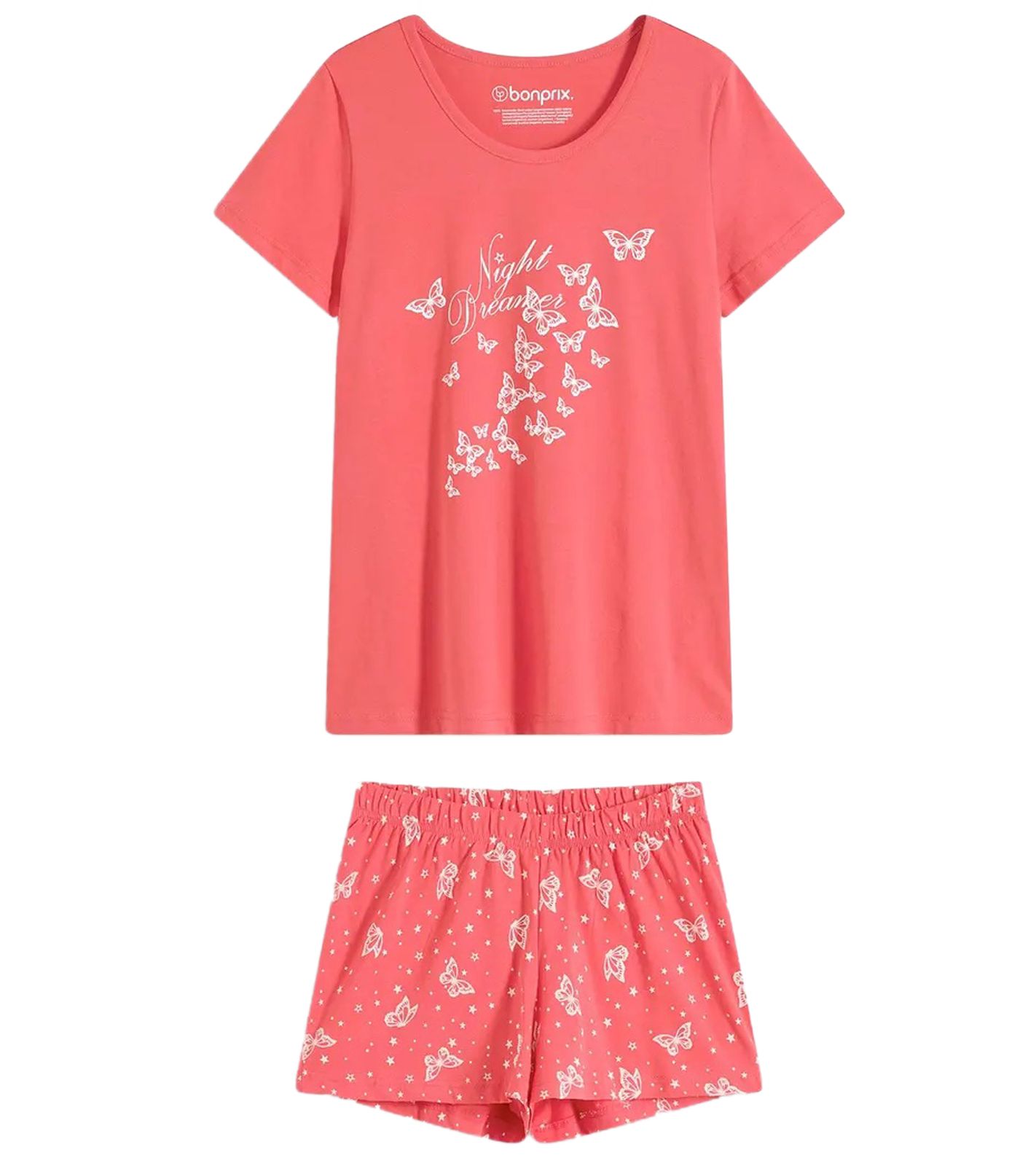 Pyjama court en coton doux pour femme, imprimé papillons, rose et blanc