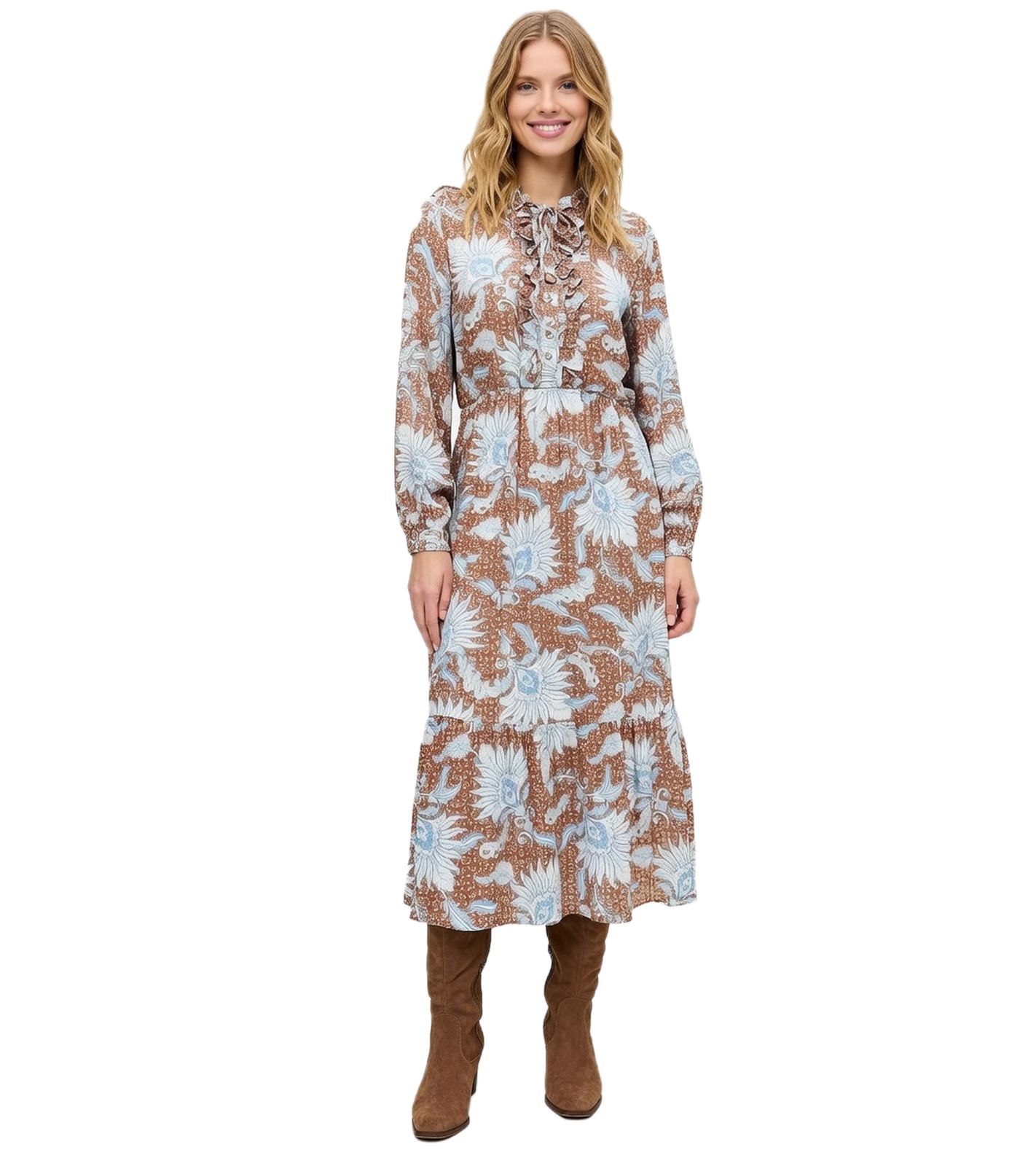 Robe maxi femme à volants, grandes tailles, 928537 Marron/Bleu