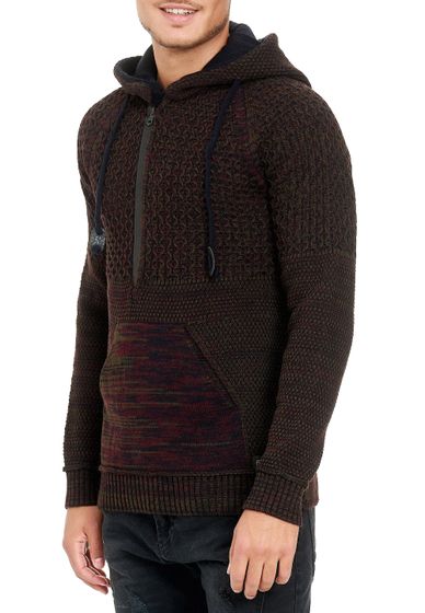 Sweat à capuche décontracté pour homme, en maille, avec demi-zip, style motard, réf. 13346, bordeaux