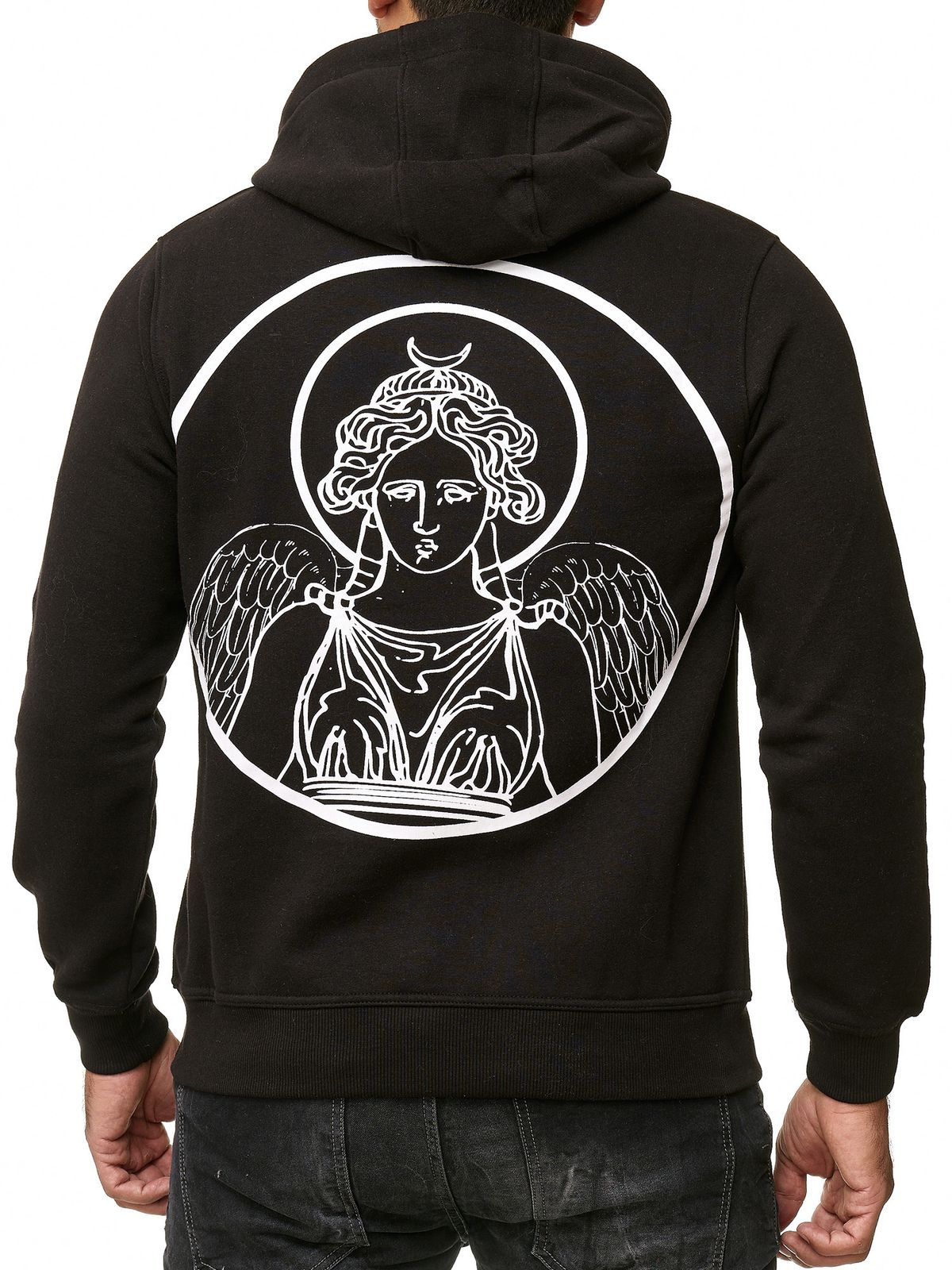 Sweat à capuche élégant pour homme, orné d'un imprimé ange et d'un grand motif imprimé au dos. Sweat à capuche noir 19102