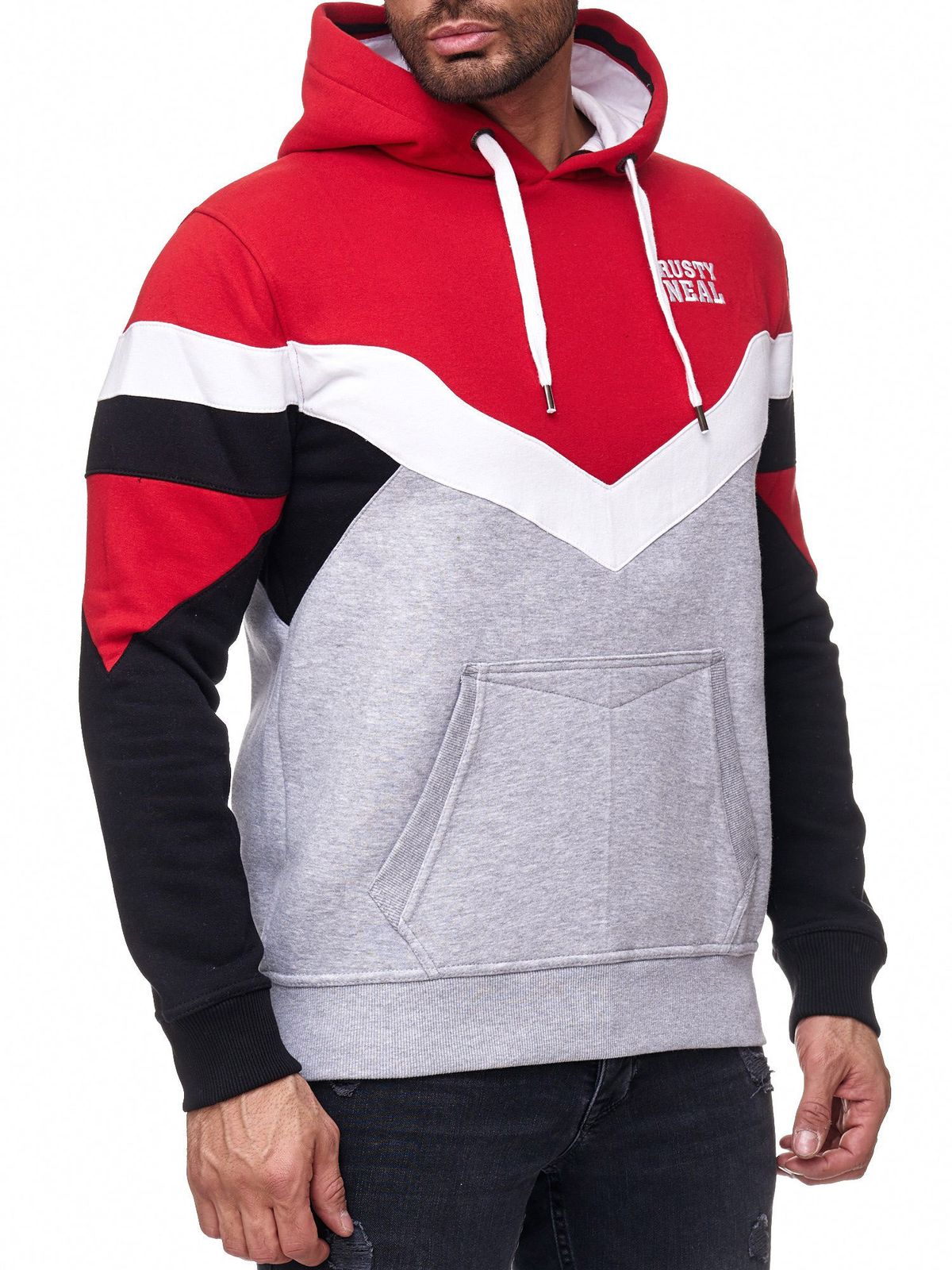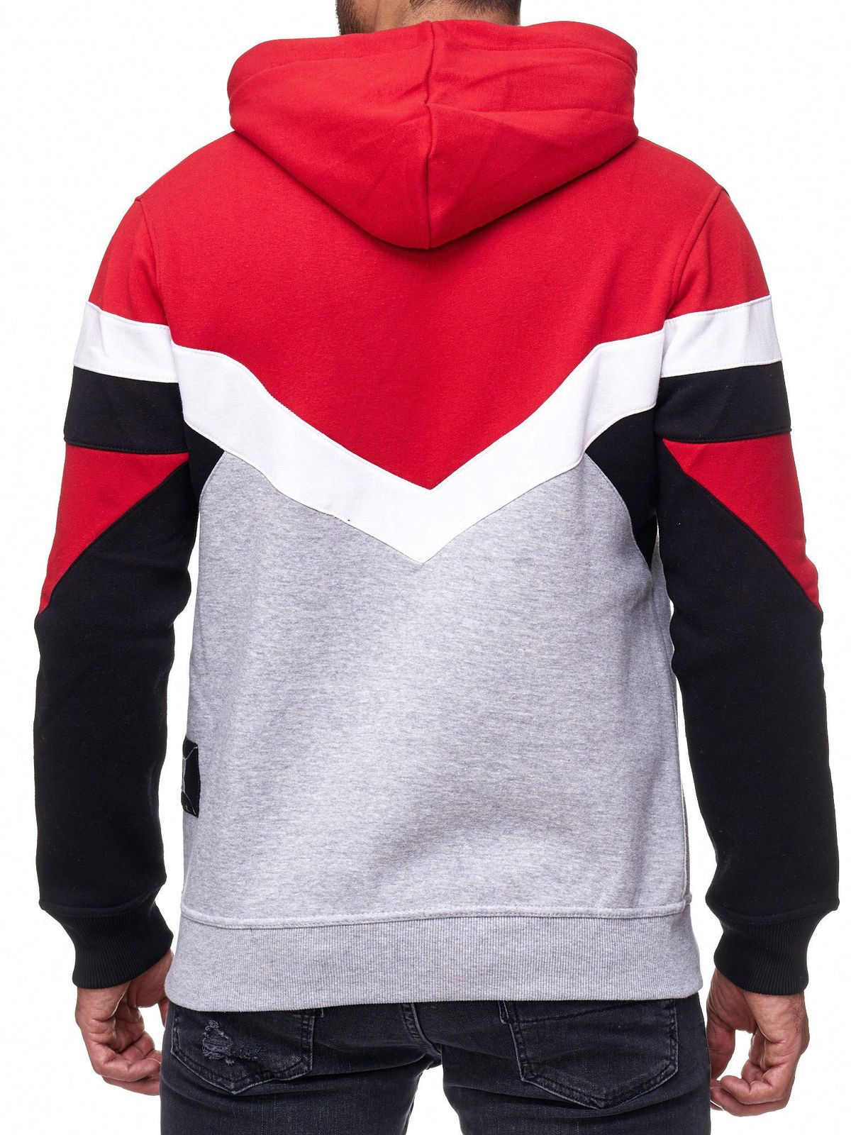 Sweat à capuche homme sport à blocs de couleurs avec poche kangourou, pull 19048, rouge