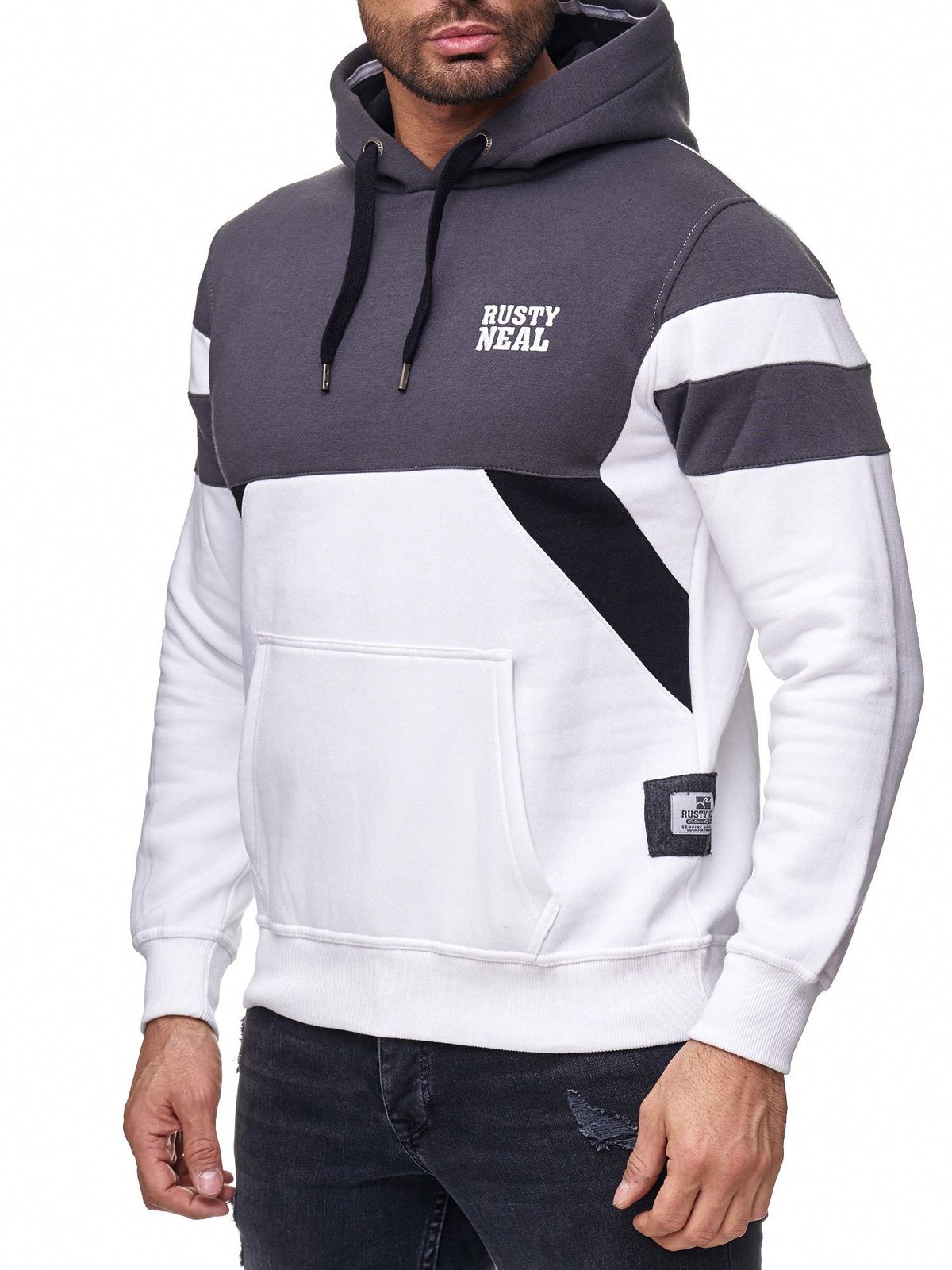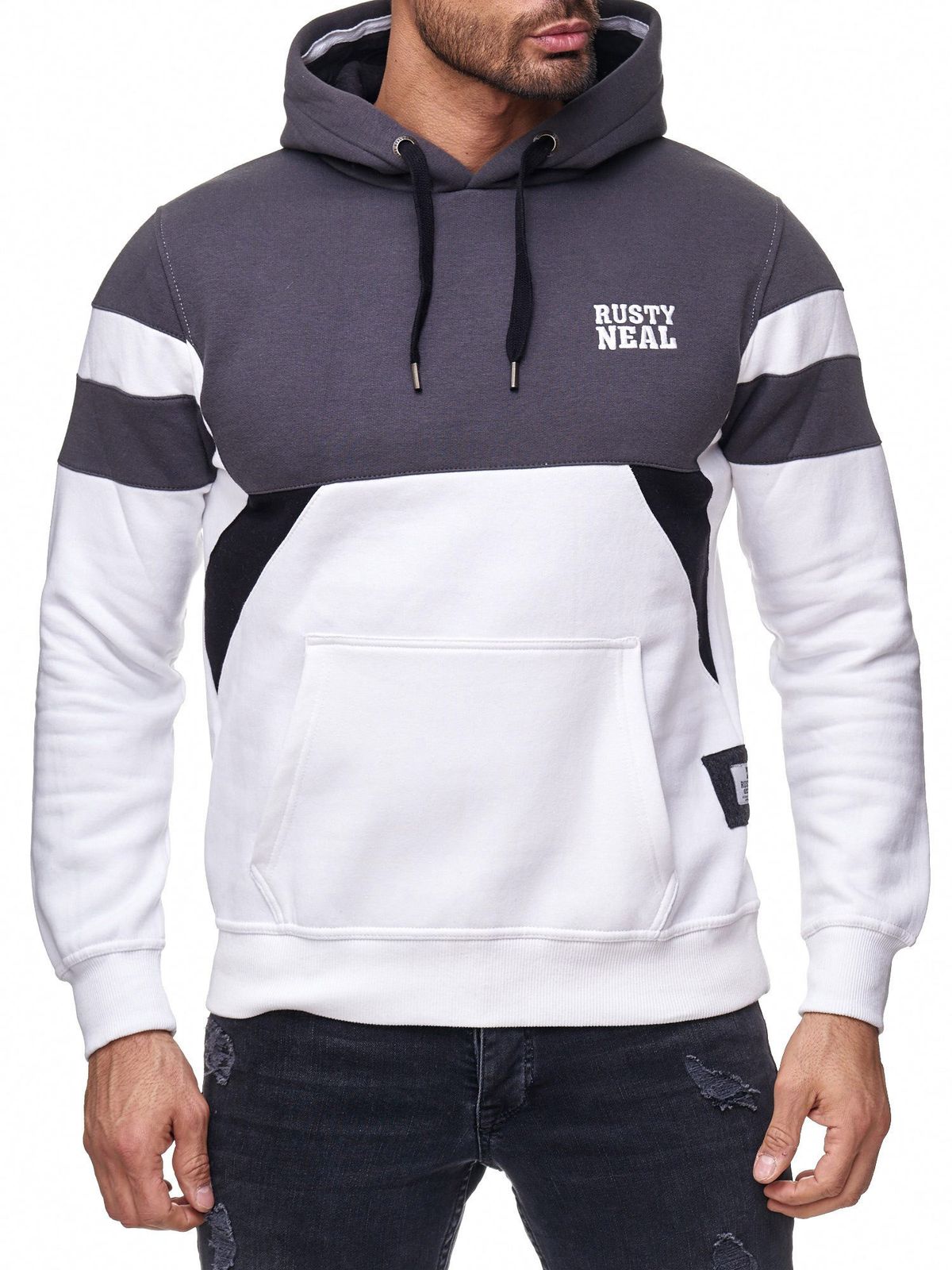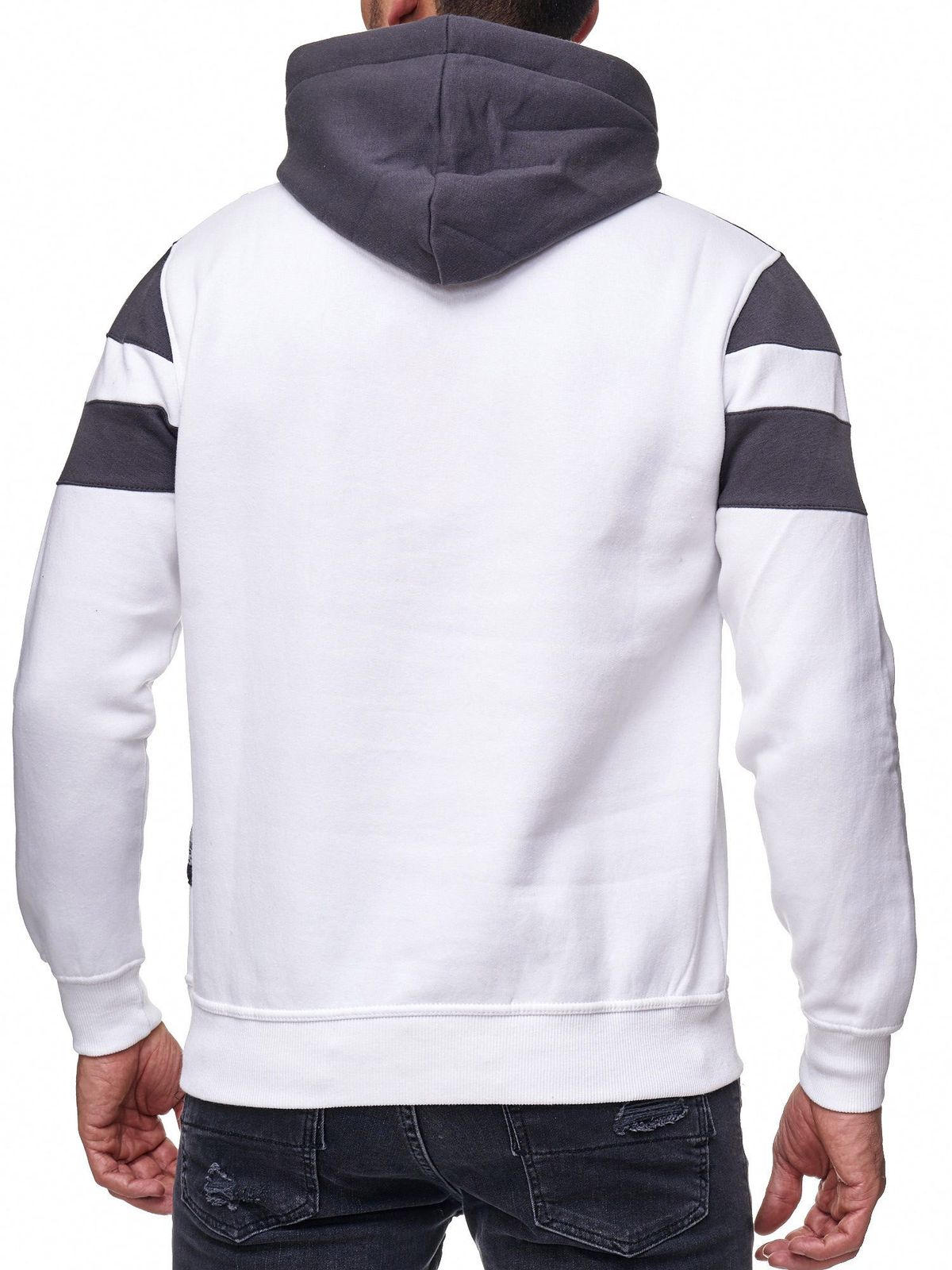 Sweat à capuche homme sport colorblock avec poche kangourou, blanc, 19041