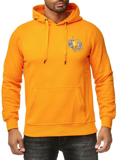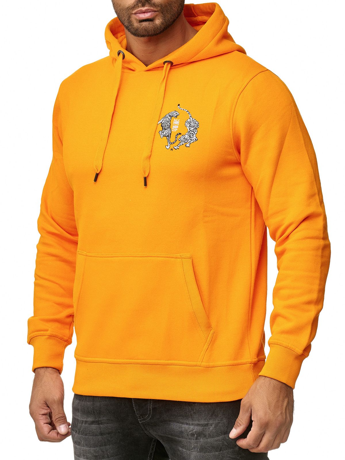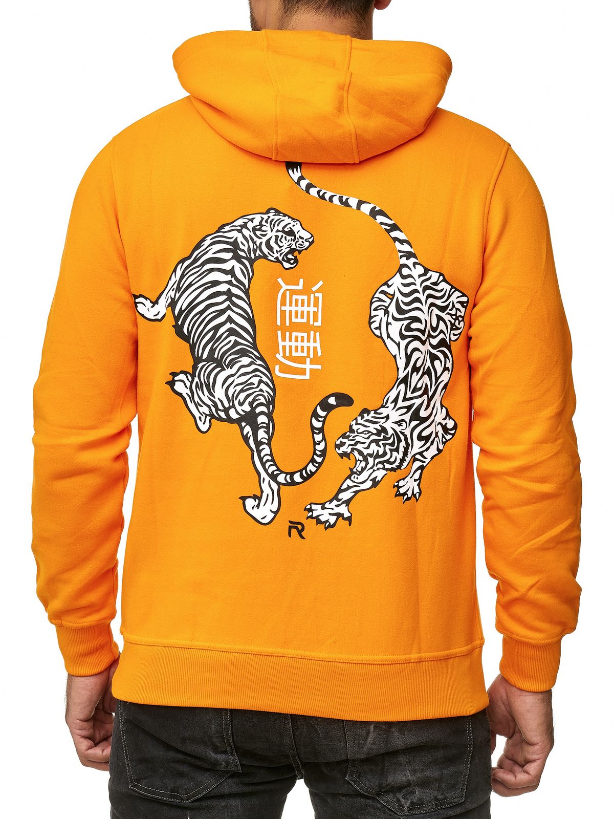 Sweat à capuche homme tendance avec imprimé tigre au dos et sur le devant, modèle urbain 19100 orange