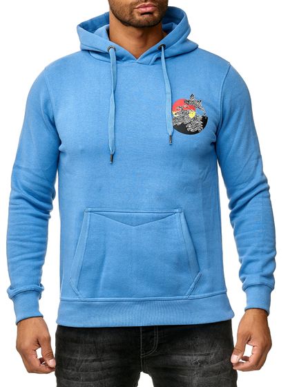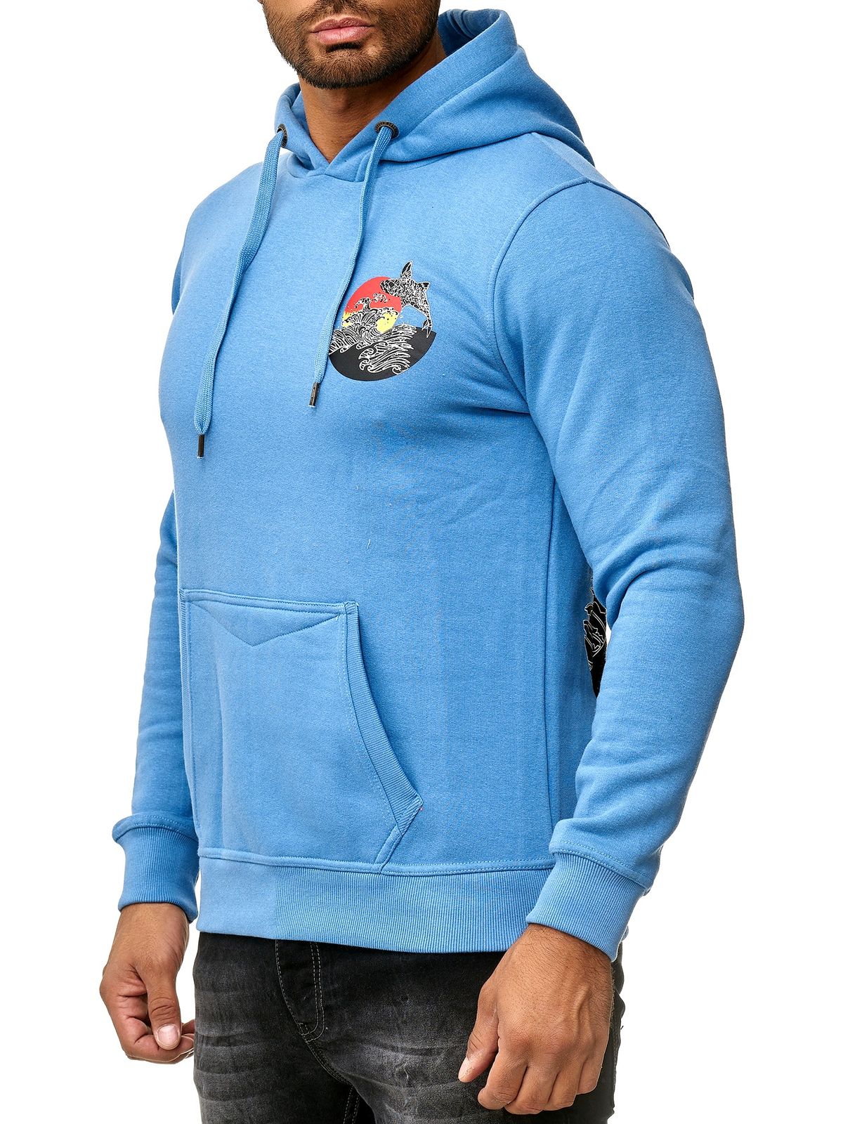 Sweat à capuche pour homme avec imprimé vagues et motif baleine, grand imprimé au dos, pull 19106, bleu