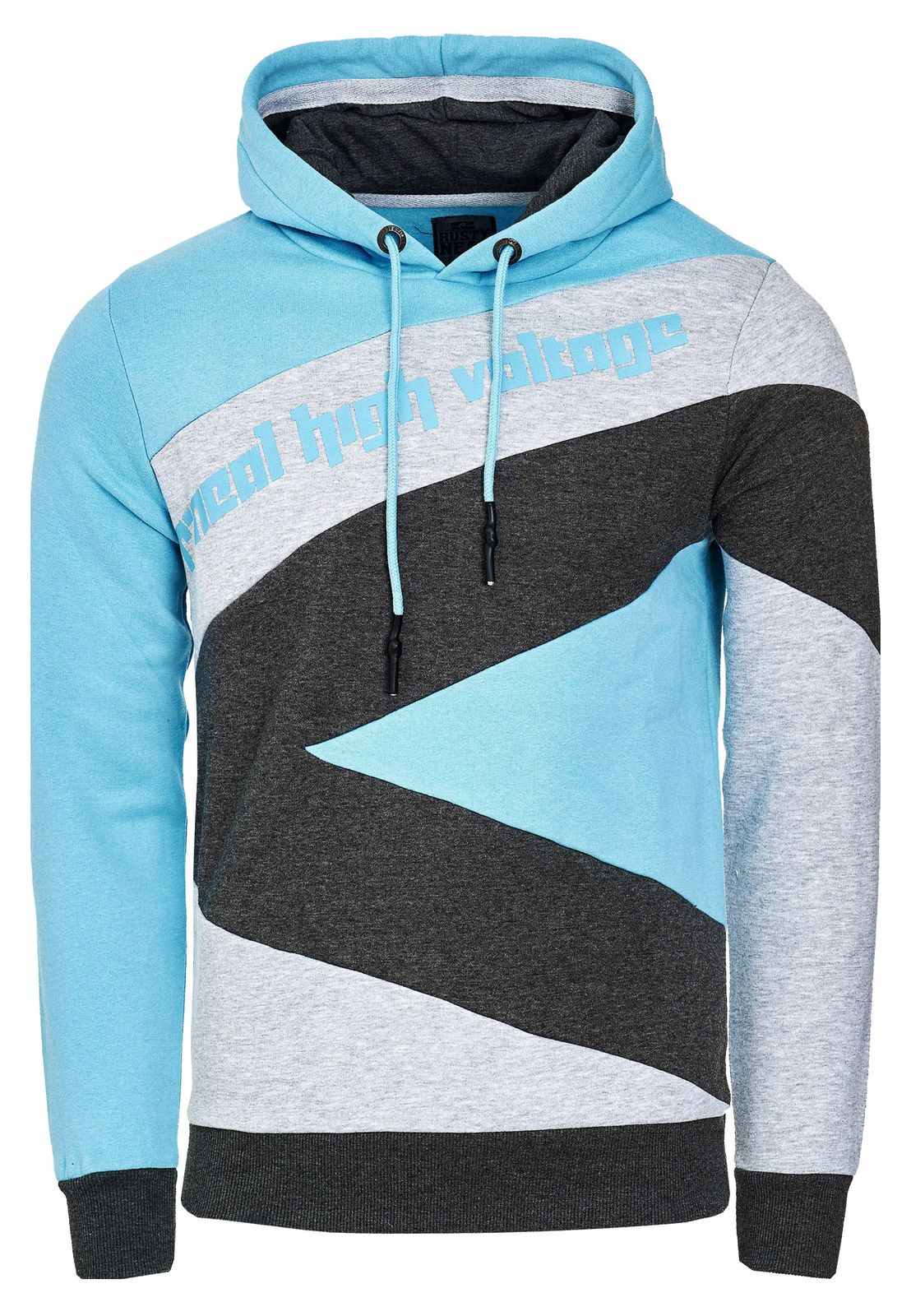 Sweat à capuche pour homme, style sportif, color-block, référence 4727, turquoise/gris chiné/anthracite